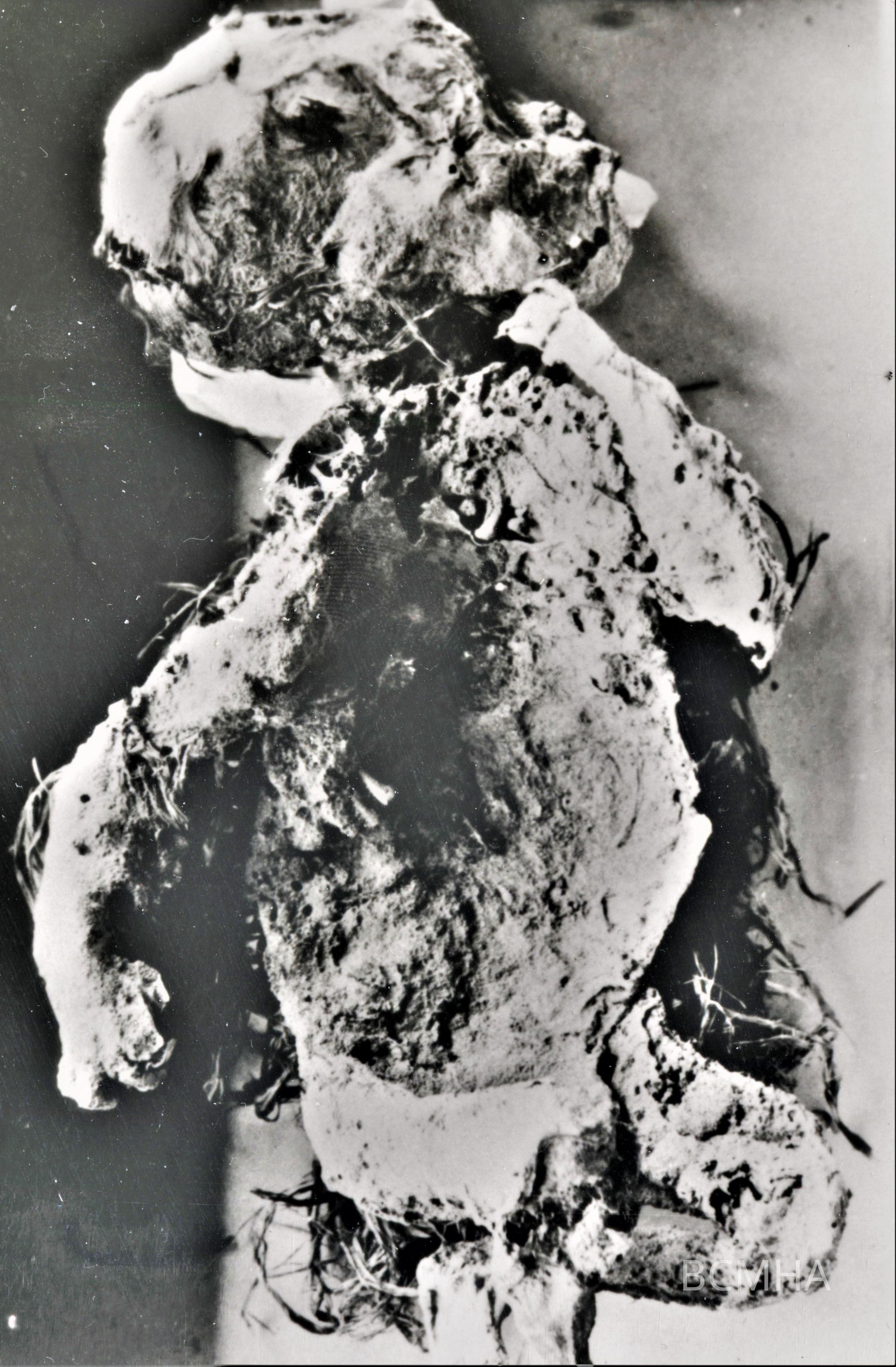Lost City, NV.- excavations, 1934: mummified baby; UNLS 0143:0446 (Pueblo Grande Collection)Collection