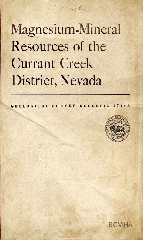 Magnesium - Mineral Resources of the Currant Creek District, NevadaEntry/Object ID