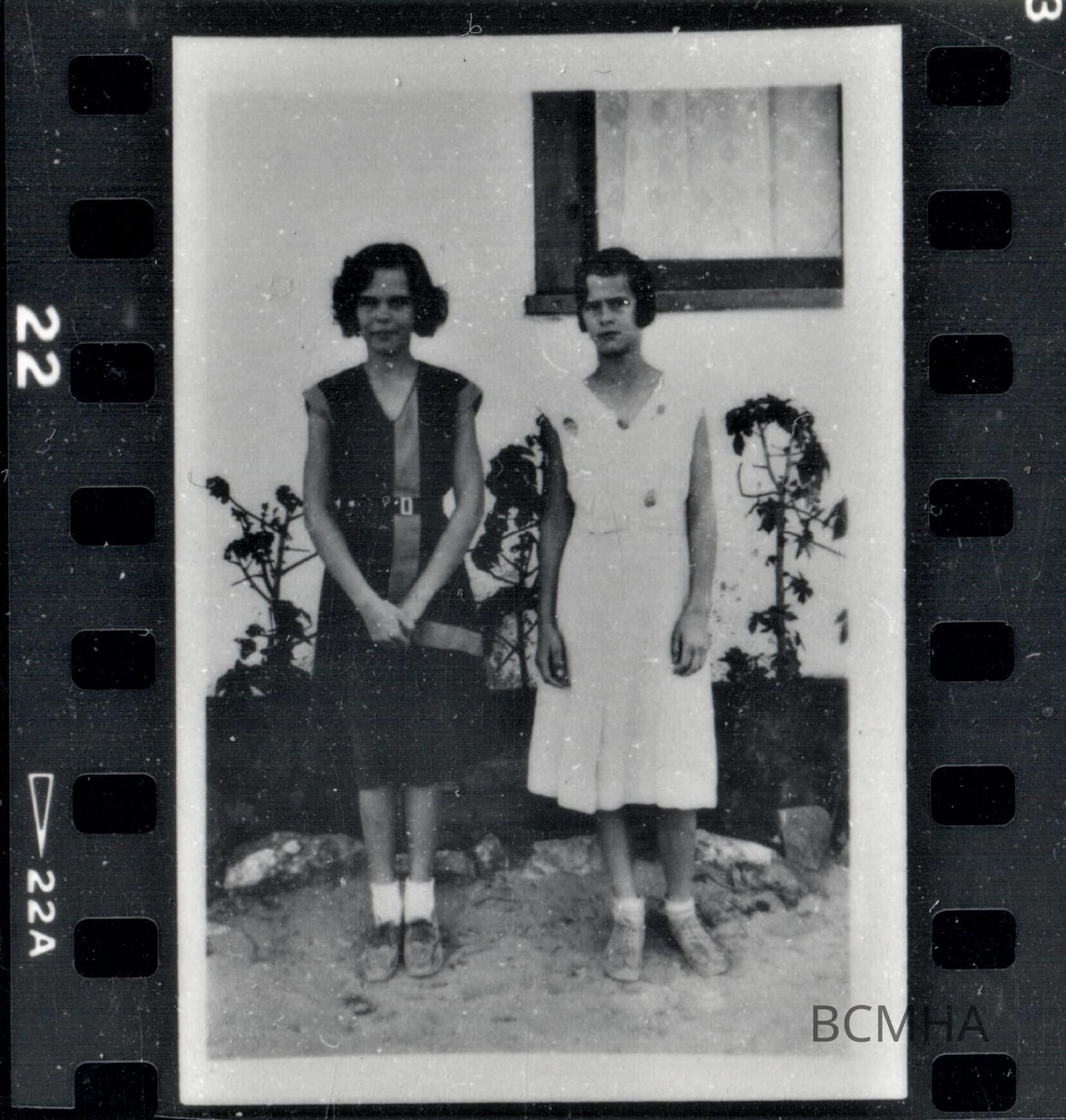 Marjorie Buck; Eileen Buck-Conners at 631 Avenue I; c. 1933-1934; note castor bean landscapingLexicon