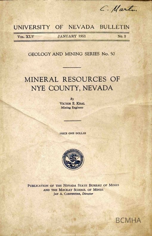 Mineral Resources of Nye County, NevadaEntry/Object ID
