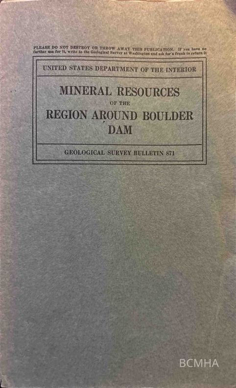 Mineral Resources of the Region Around Boulder Dam, bulletin 871 (3 copies)Entry/Object ID