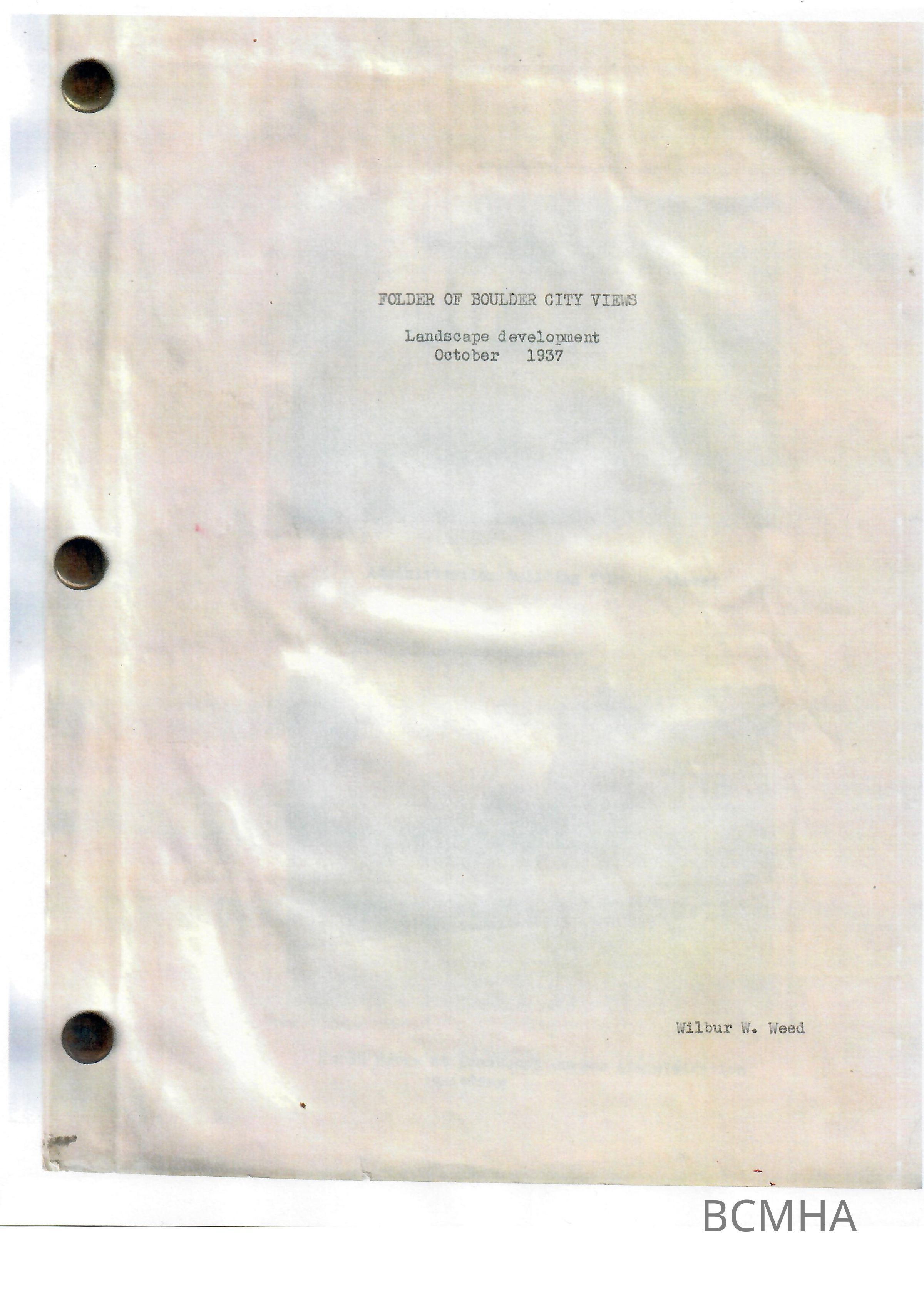 994.41 MS: Wilbur W. Weed papers: “Folder of Boulder City Views: Landscape Development, October 1937.”