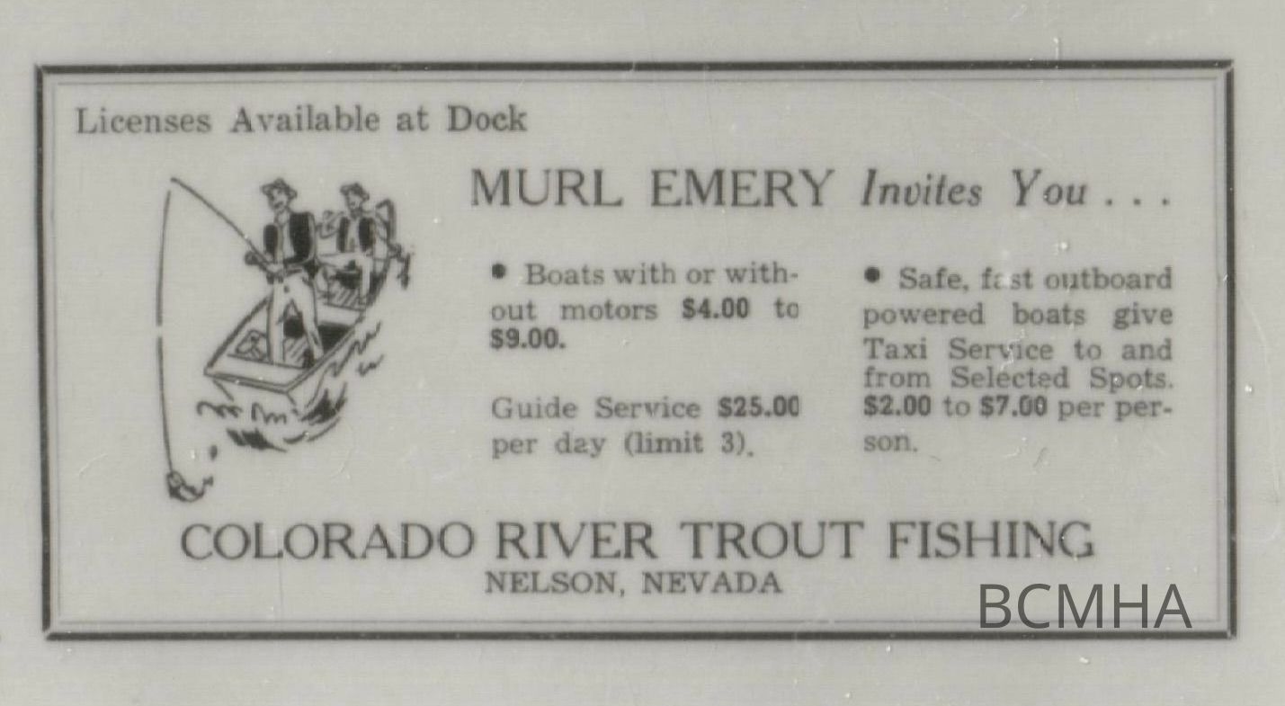 Nelson's Landing - advertisement for Murl Emery's fishing camp at Nelson's Landing; from Your Host in Las Vegas, September 1950, p. 22Collection