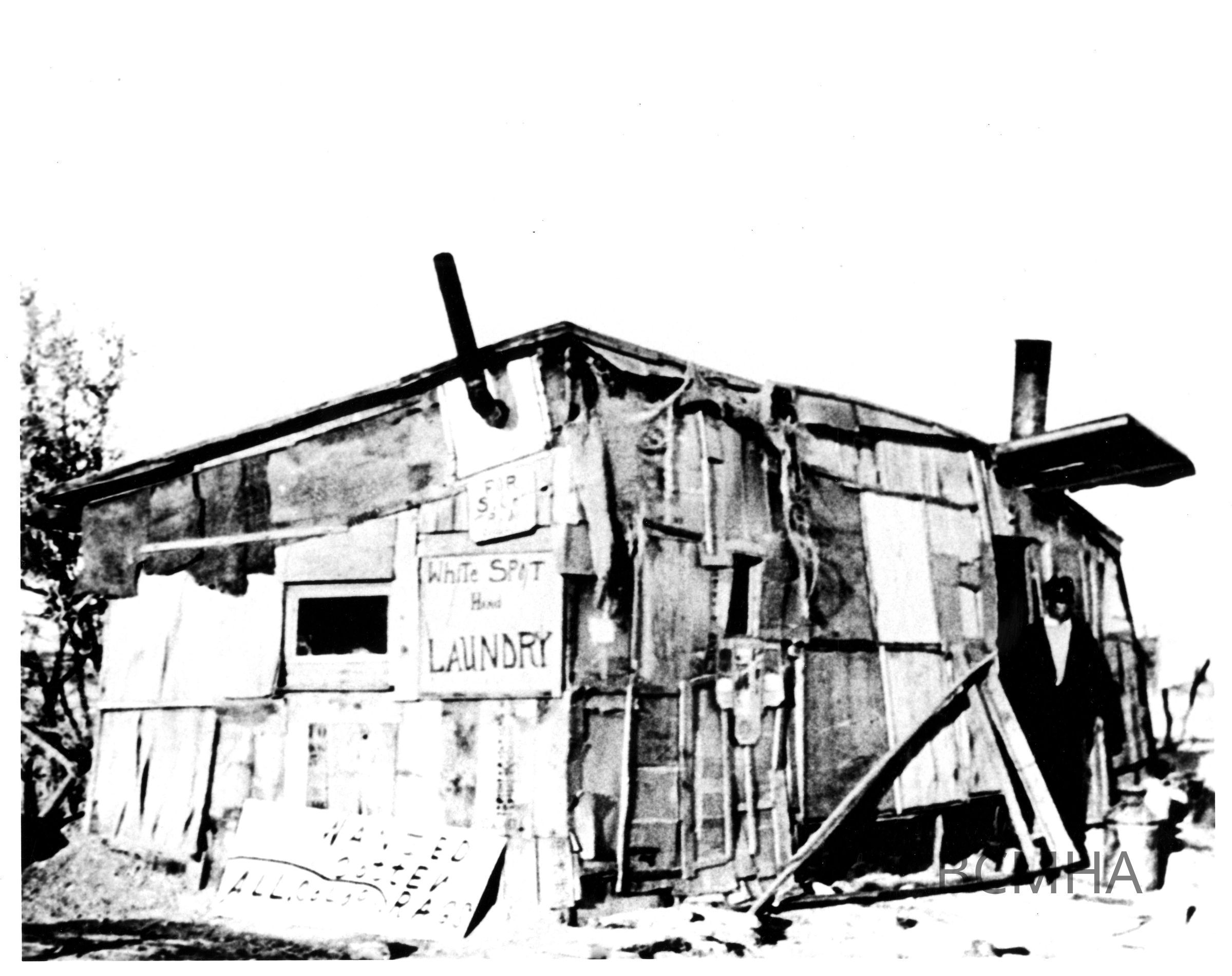 Pictured is the White Spot Hand Laundry; in North Las Vegas; also known as Hooverville; 1930-1932Made/Created