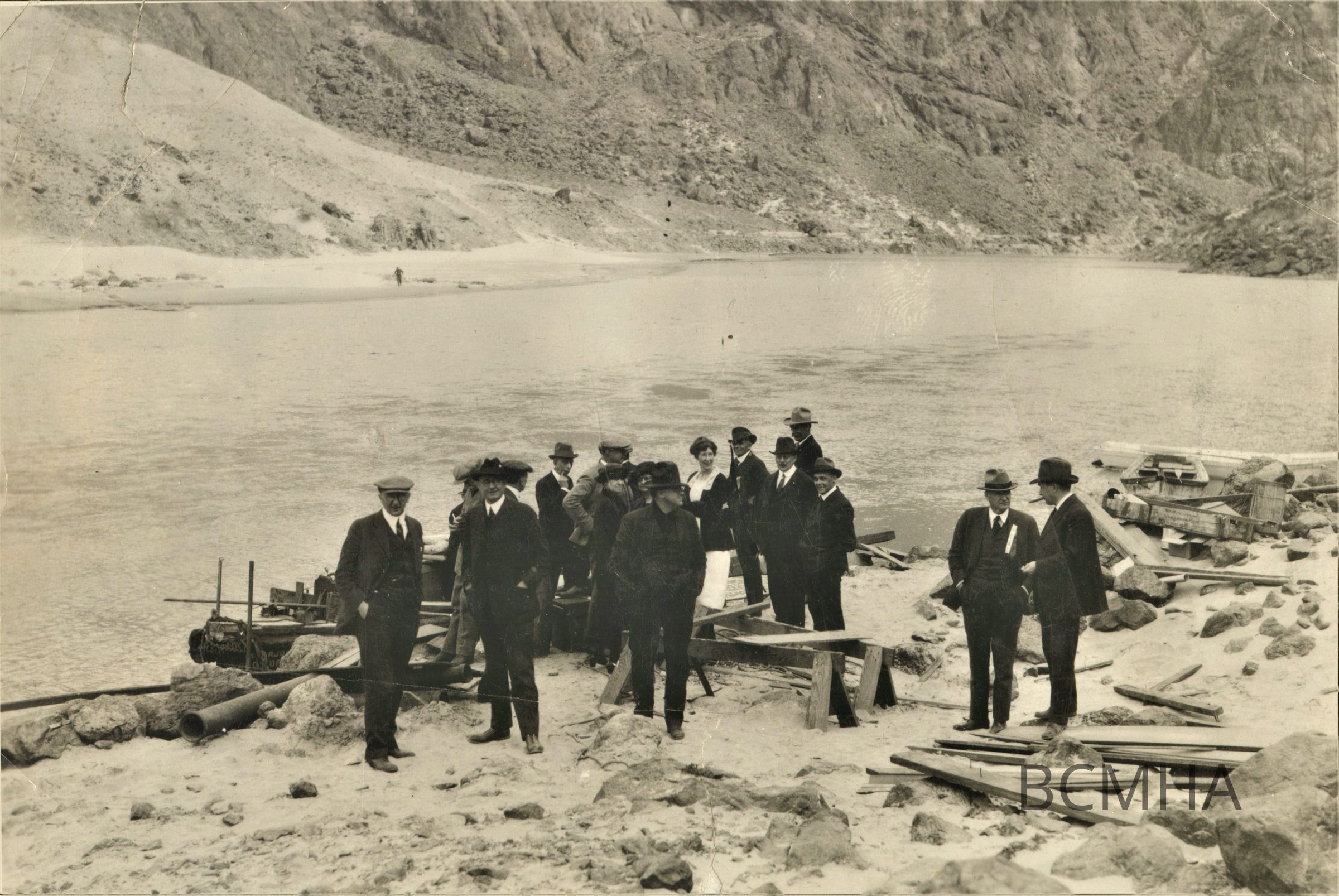 Black Canyon; Officials at the entrance to Black Canyon; 1923; Charles P. Squires, fifth from left with his finger in his mouthCollection