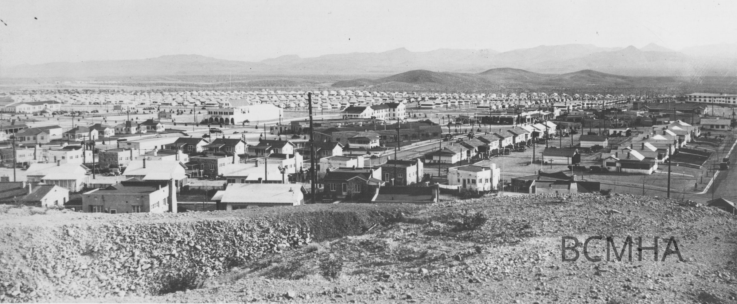 Panorama of Boulder City from Nob Hill; Boulder Dam Hotel, center; before the summer/fall 1934 expansion; ca. spring 1934; UNLS photo, Manis Collection 0100 : 0282Made/Created