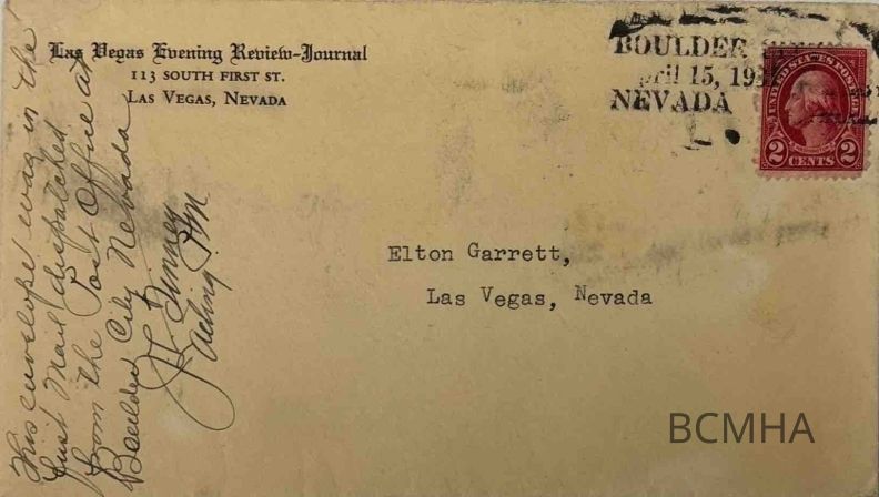 by Boulder City Postmaster F. M. "Pops" Doolittle]