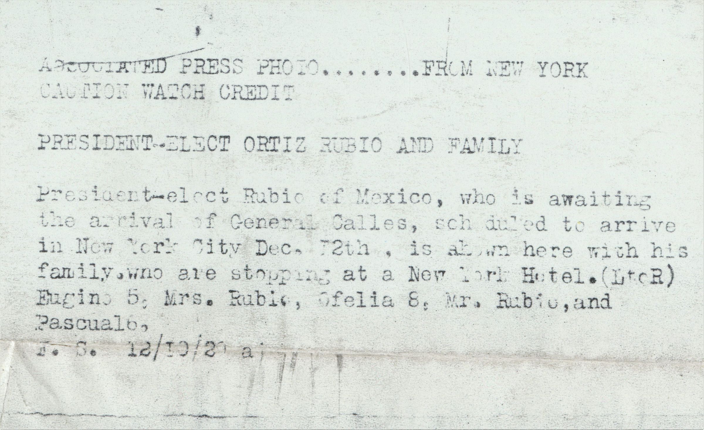 President of Mexico Pascual Ortiz de Rubio in NY. with his family December 1929Entry/Object ID