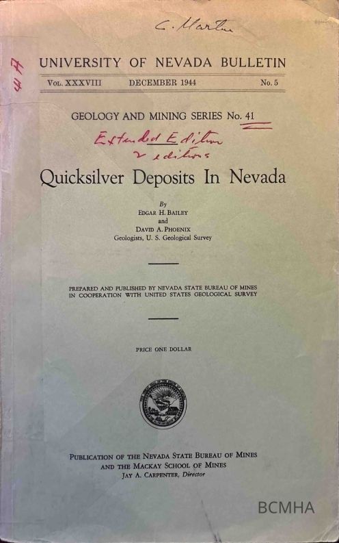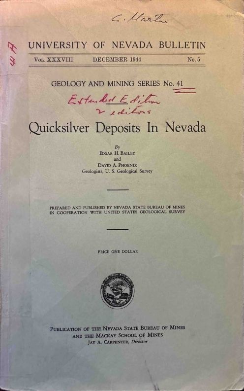 Author: University of Nevada Bulletin Vol 38, No. 5; published in 1944Cataloged By