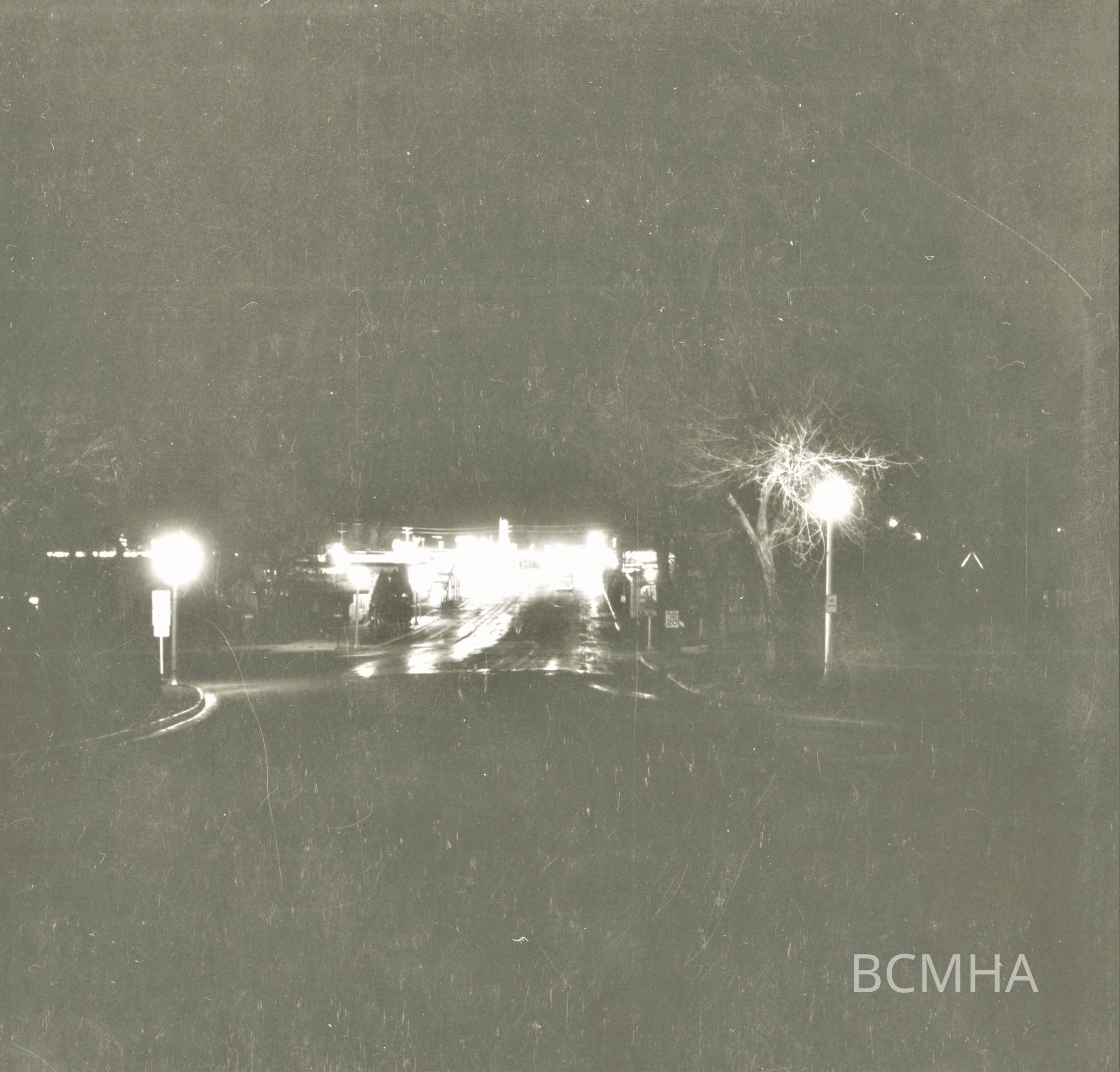 Boulder City Roads and Streets: Nevada Way, 1960s view southwest from the USBR administration building, March 1967- {night}; Cliff Segerblom, photographer; NSMHSCollection