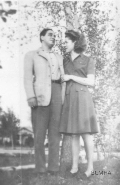 Robert Verdell Sahagian & Therese Courture Sahagian at 413 Utah St. Boulder City (on the back of the original photo: "Me & Bob Sahagian before I got his good eyes-Boulder City visit. He was very reluctant to pose for picture.")Made/Created