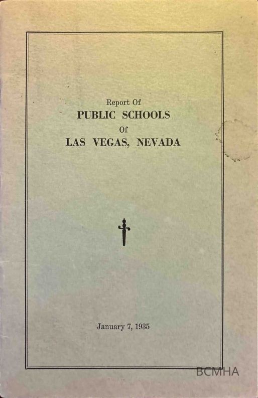 This file contains: newspaper articles; photocopies of newspaper articles; booklet - Report of Public Schools of Las Vegas, 1935Cataloged By