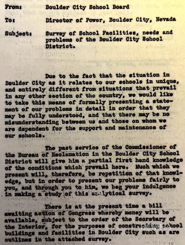 Schools - Boulder City: Development and Financing: Correspondence (1940-48)Entry/Object ID