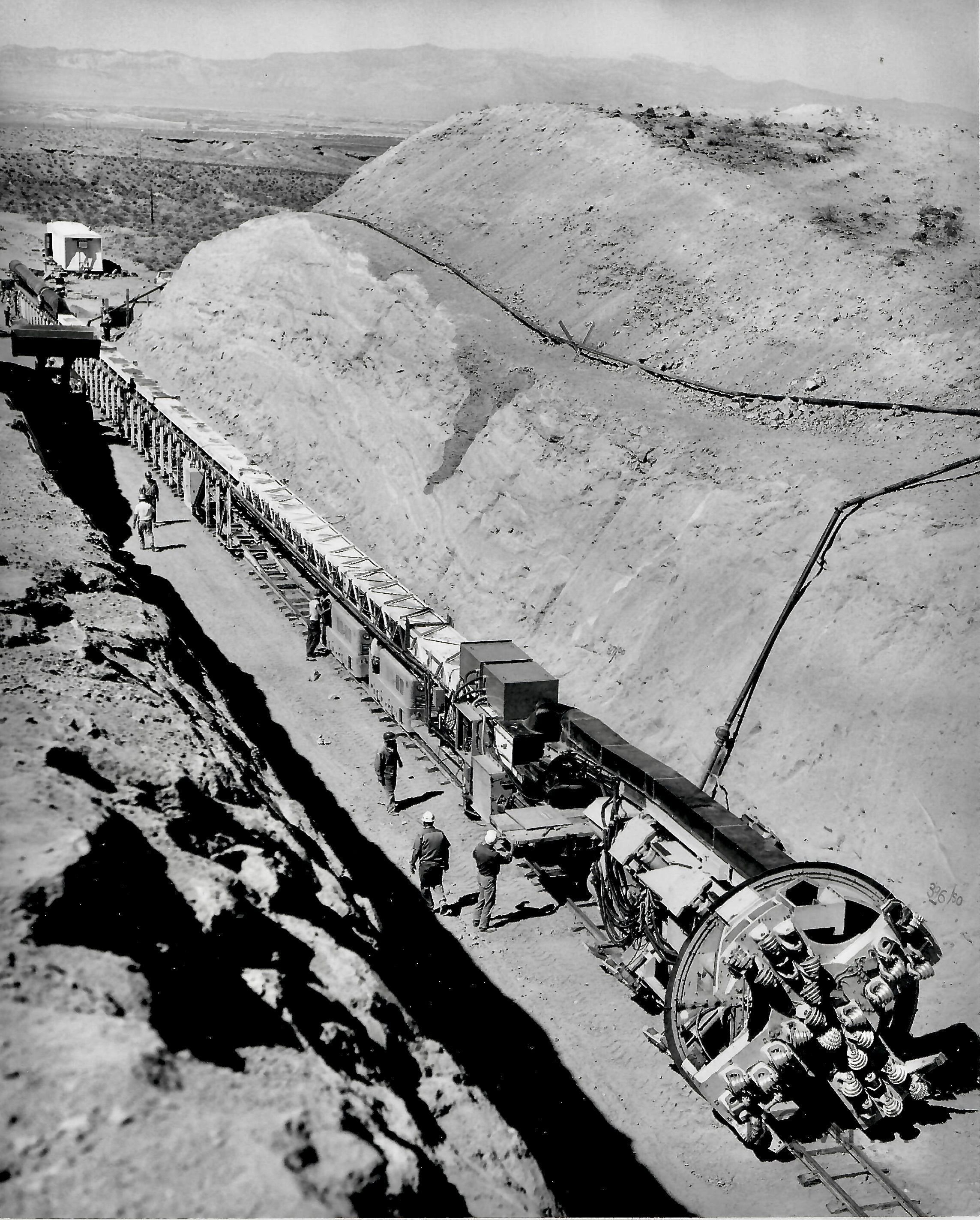 Southern Nevada Water Project - River Mountains Tunnel drill ["The 'mole' which was used to drill the River Mountain Tunnel for the Southern Nevada Water Project, c. September 1968."]; USBR photo no. P952-300-8433Collection