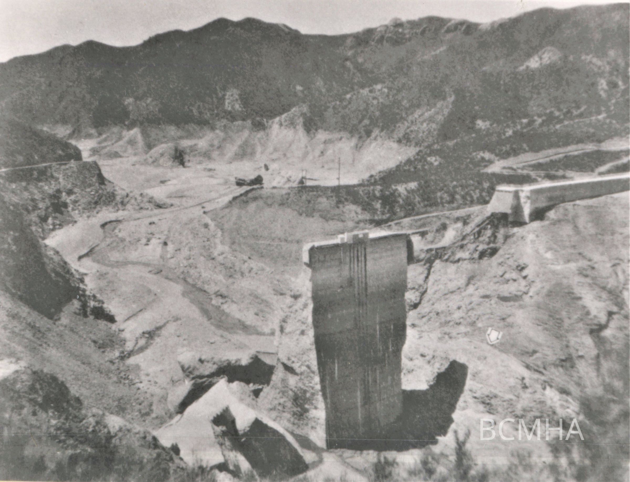 St. Francis Dam break; March 13, 1928; photos from "Man-Made Disaster: The Story of St. Francis Dam"; by Charles F. Outland; Glendale, CA; Arthur H. Clark; Co., 1963; p. 41; dam fragments; UNLS coll. # TC557 C3 S35 08Collection
