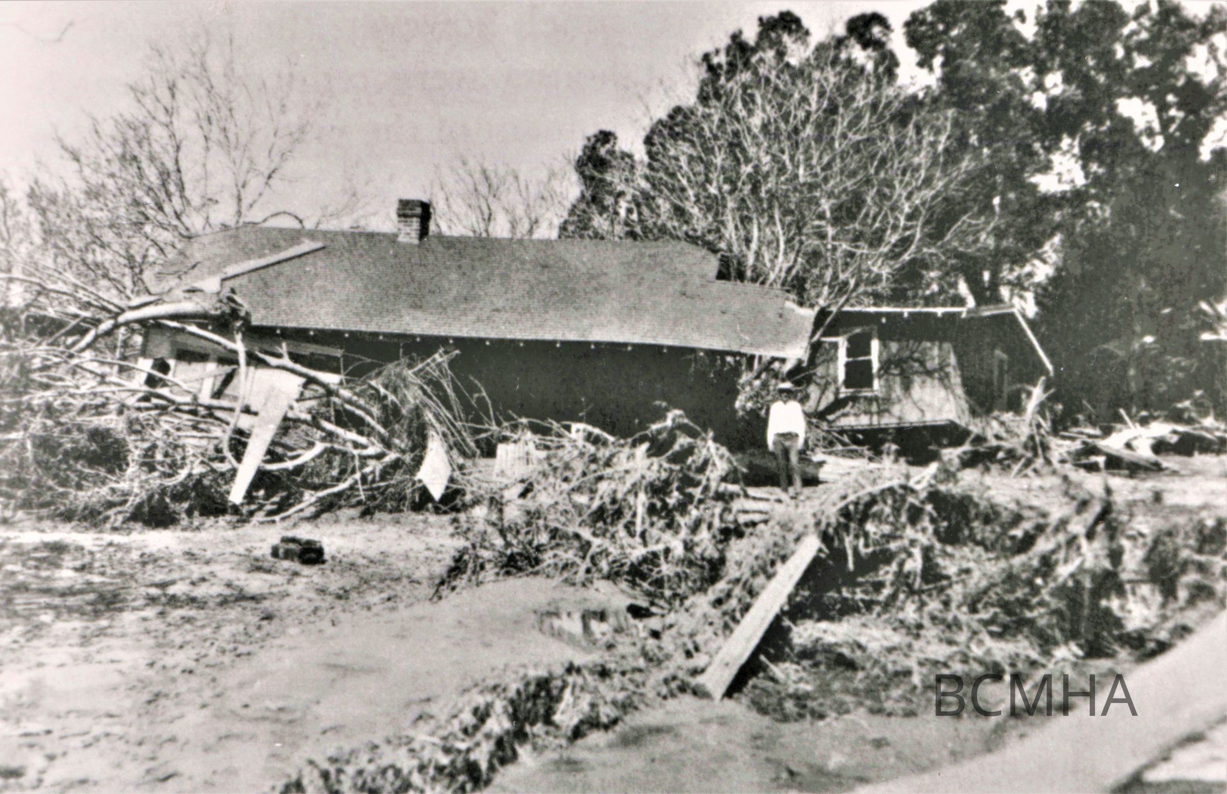 St. Francis Dam break; March 13, 1928; photos from "Man-Made Disaster: The Story of St. Francis Dam"; by Charles F. Outland; Glendale, CA; Arthur H. Clark Co.; 1963; p.125; damage in Santa Paula;