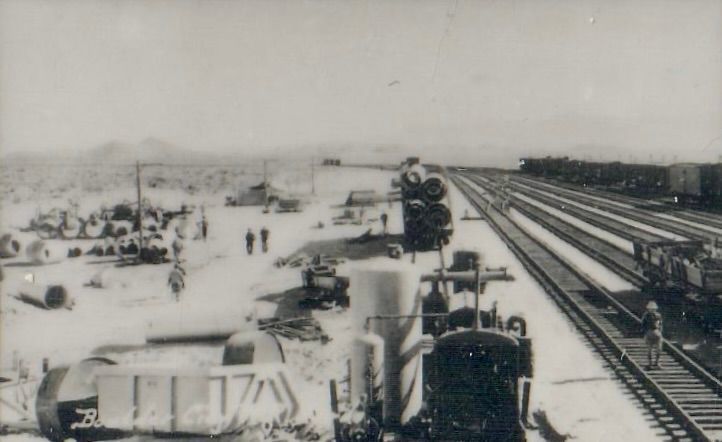 Union Pacific Railroad - Boulder City branchline: " Union Pacific Railroad Interchange yard in Boulder City", c. 1931-32; Altus "Tex" and Dorothy Nunley photo postcard [neg]Collection