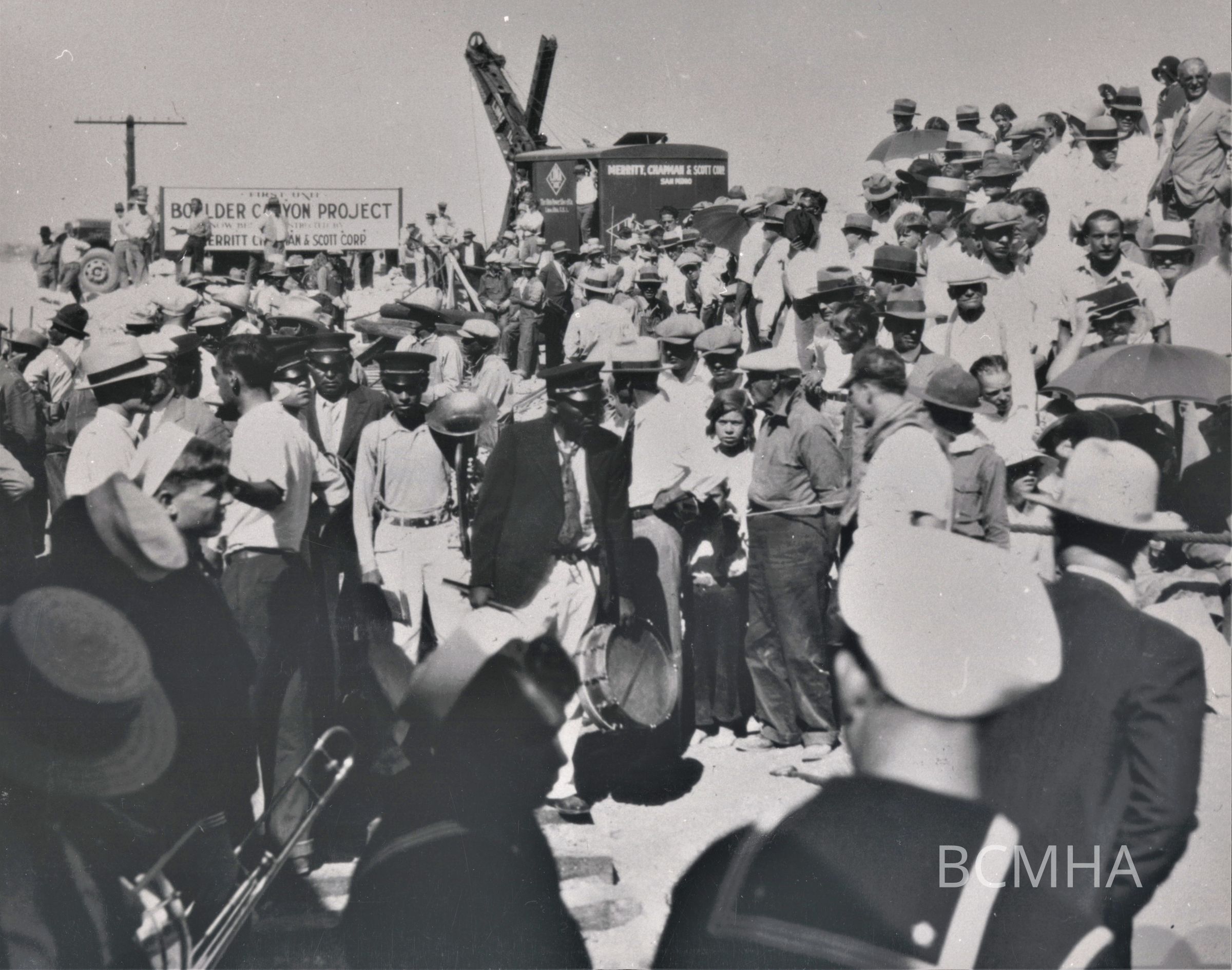 Union Pacific Railroad; Silver Spike Ceremony; to begin construction of the Boulder City branch line; September 17, 1930; note Hispanic (?) band members; NSMHS photoCollection