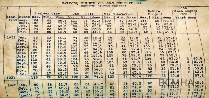 Weather - Boulder City: Temperatures: Average (1930-45)Entry/Object ID