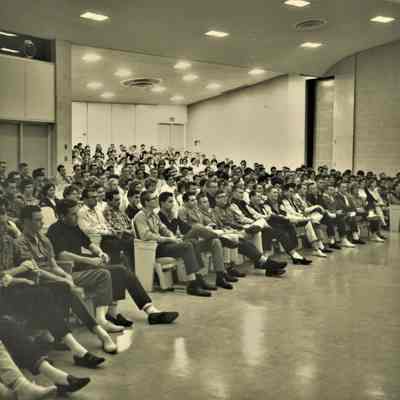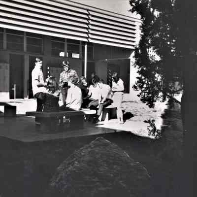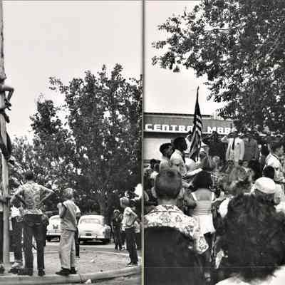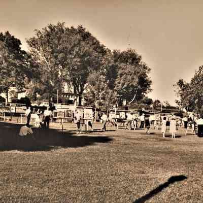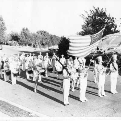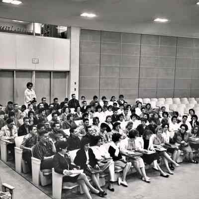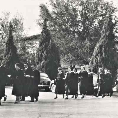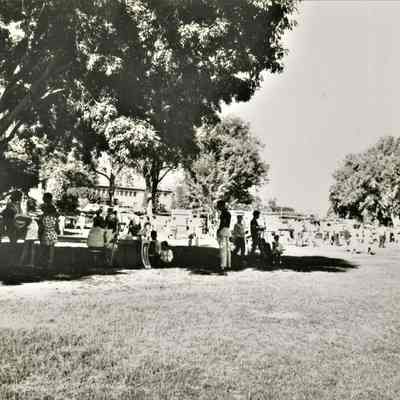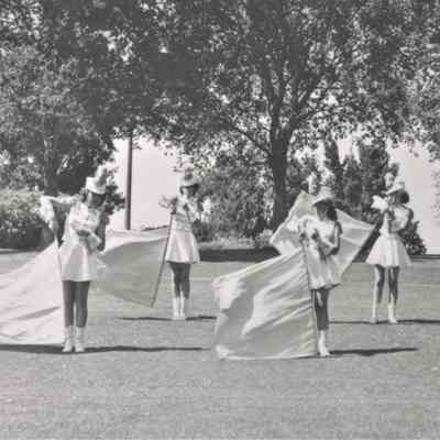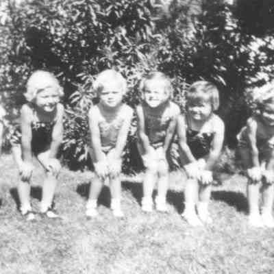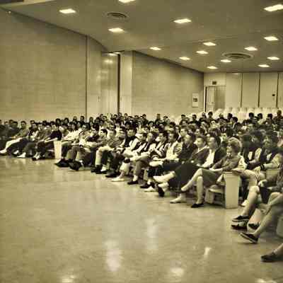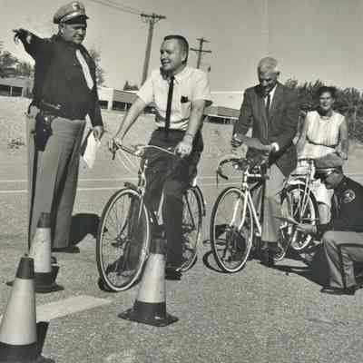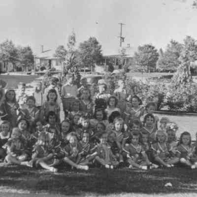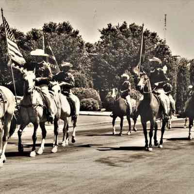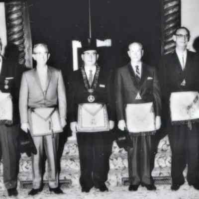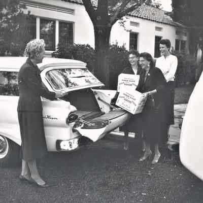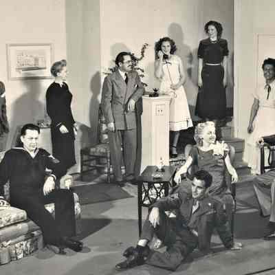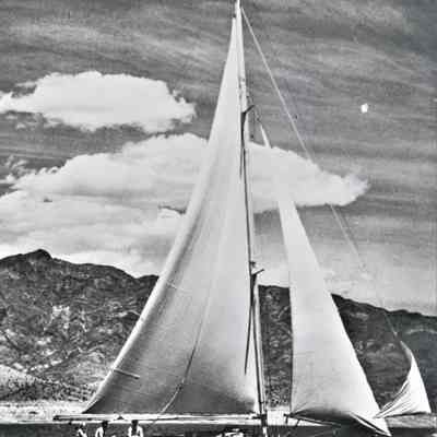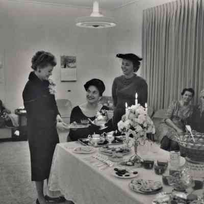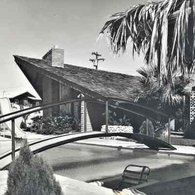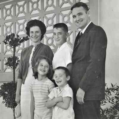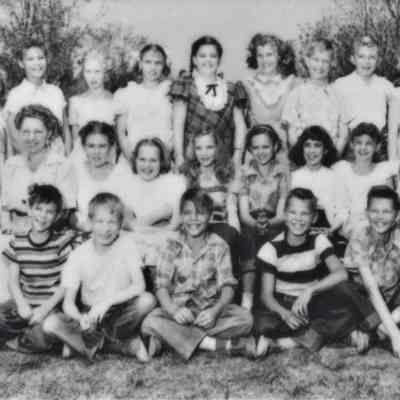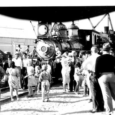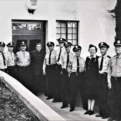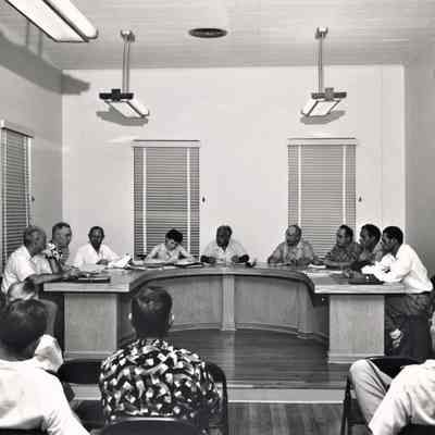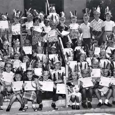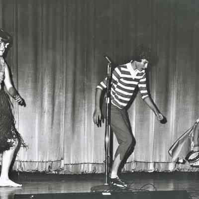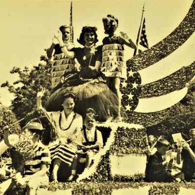 l-r: Bob Glinski; Elton Garrett; Jackie Brown & Hal Brown Boulder Dam Hotel owners; Dan Steelman Commodore of the Lake Mead Yacht Club front, l-r: Ann Underhill; Robin Killinger Queen of the 53rd Annual Gold Cup Race, Lake Mead. 1960