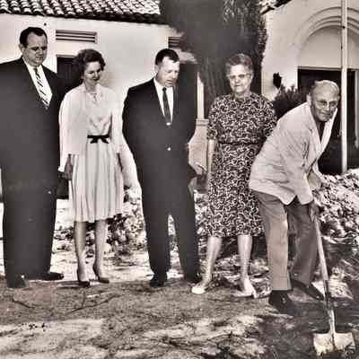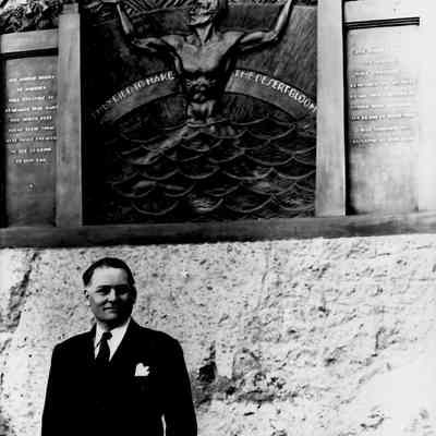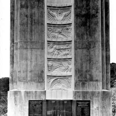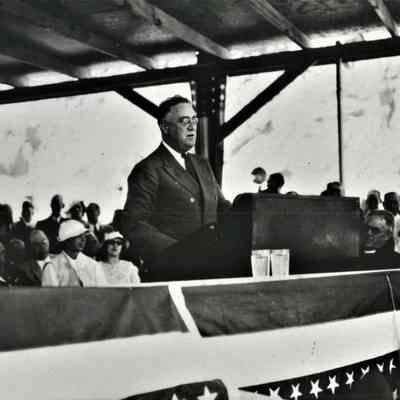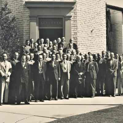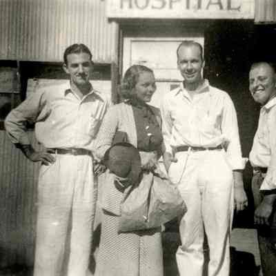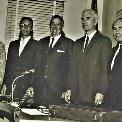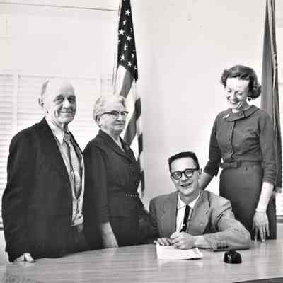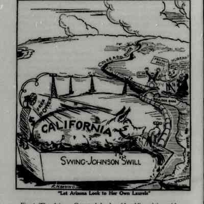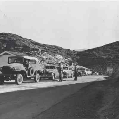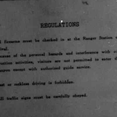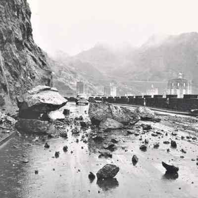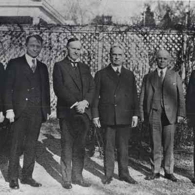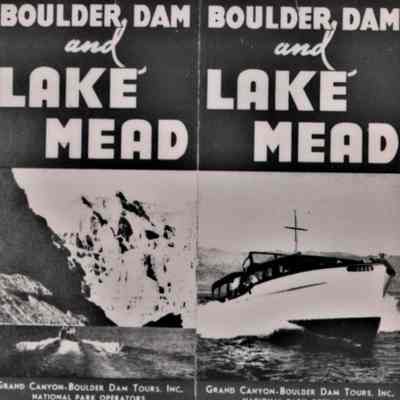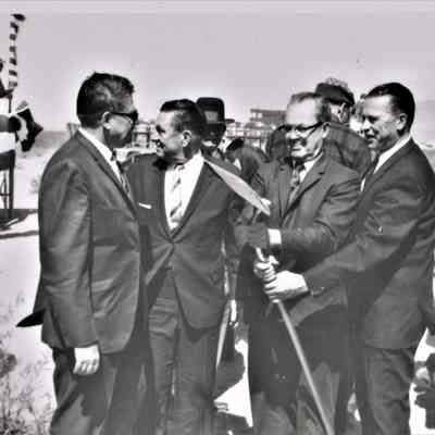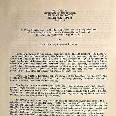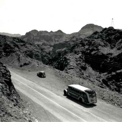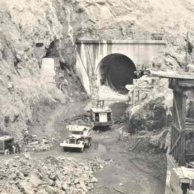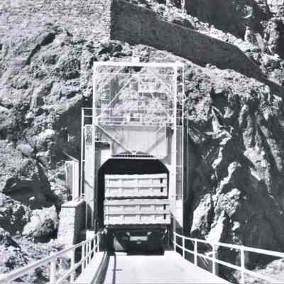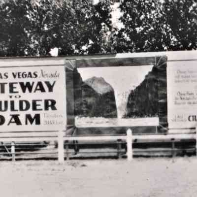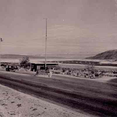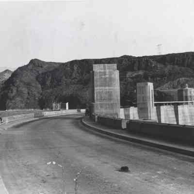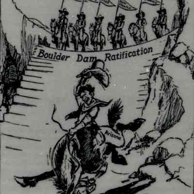 at the entrance to Black Canyon, 1920's l-r: AZ. Senator Henry Ashurst; Mrs. James G. Scrugham; NV. Senator James G. Scrugham; Senator Norris