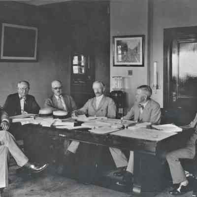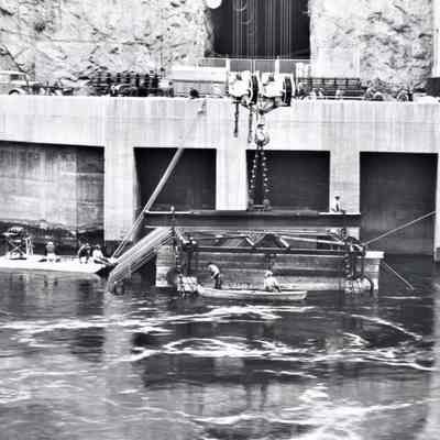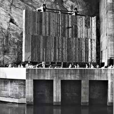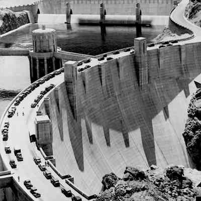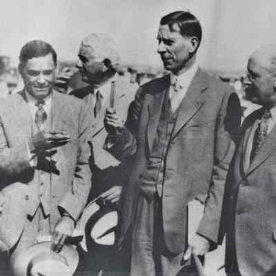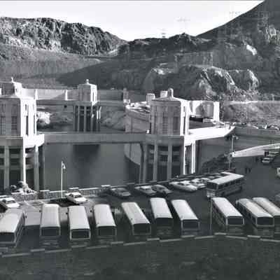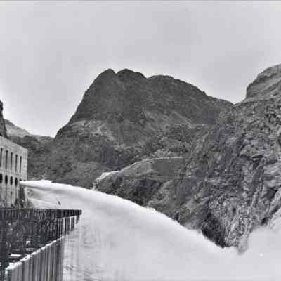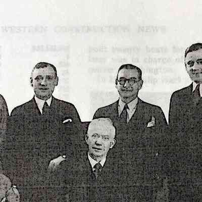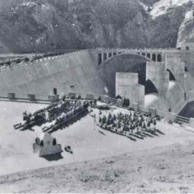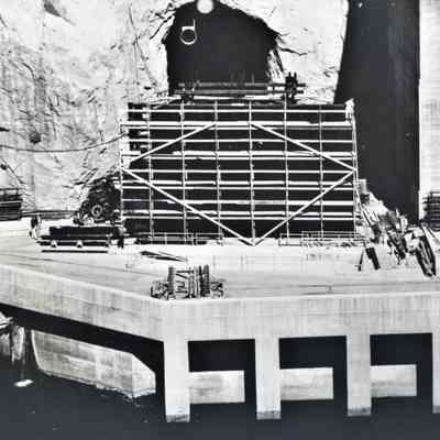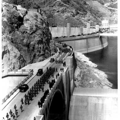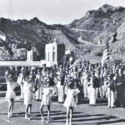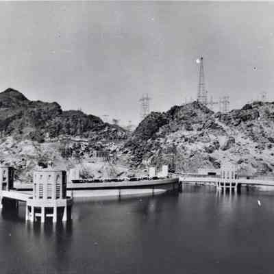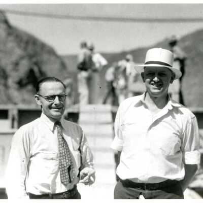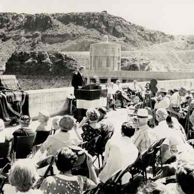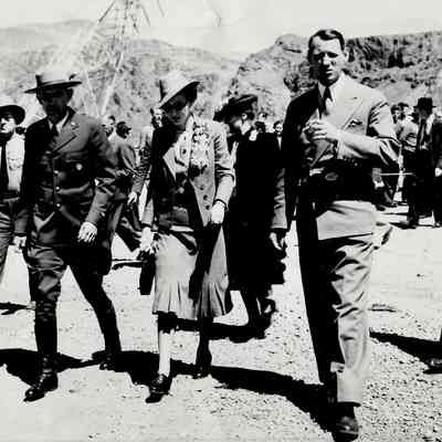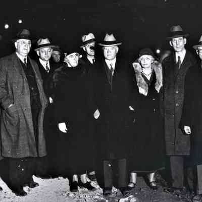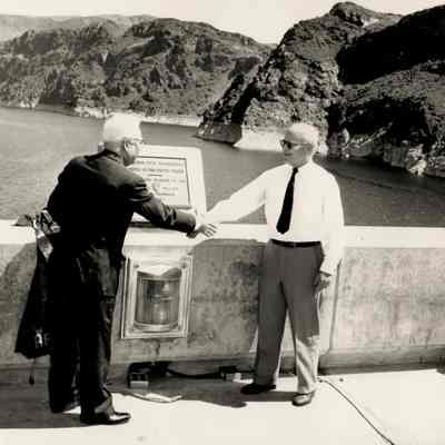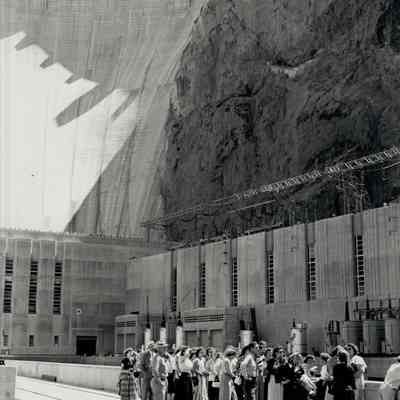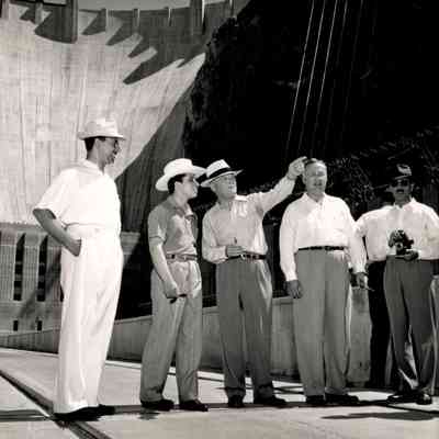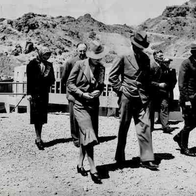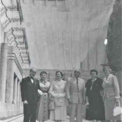 l-r: John Page; Mrs. Harold Ickes; (?); Secretary of the Interior Harold Ickes; Irving C. Harris at Hoover Dam, February 23, 1939