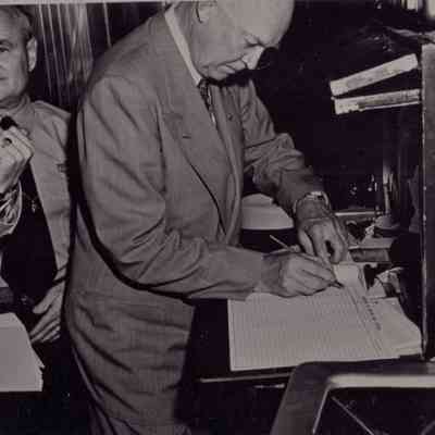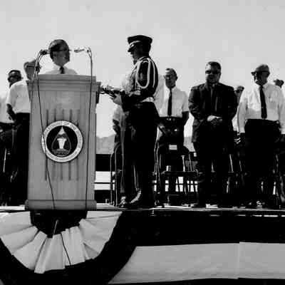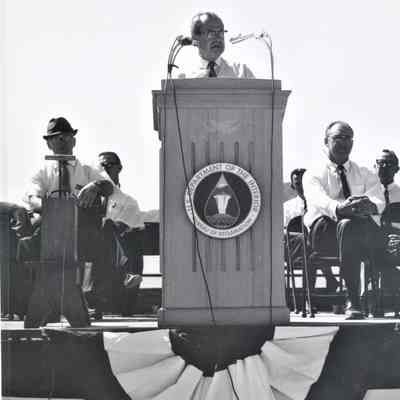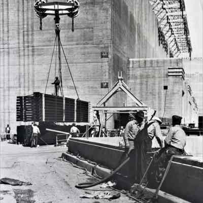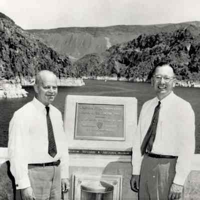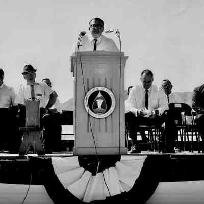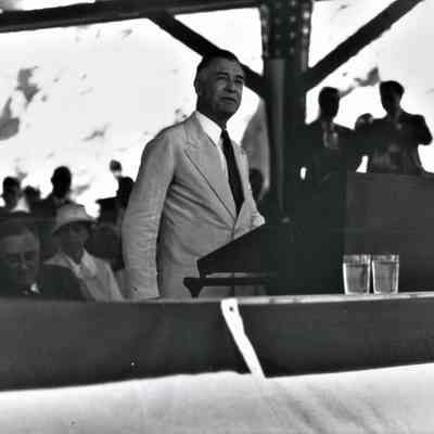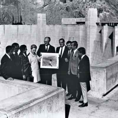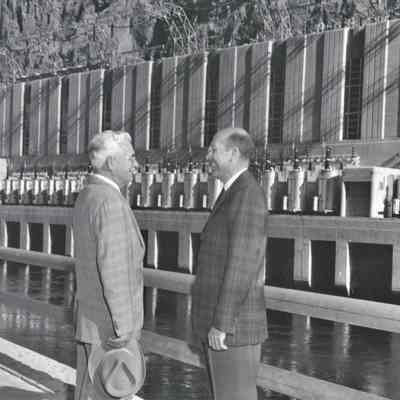 l-r: Senator William F. Knowland; Mrs. Robert A. Taft; Senator Robert A. Taft at Hoover Dam, September 18, 1947