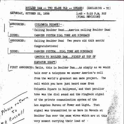 World's Biggest Job, The, Radio Script of the Death Valley Days broadcast