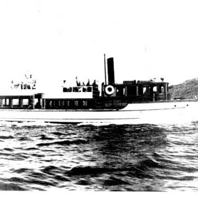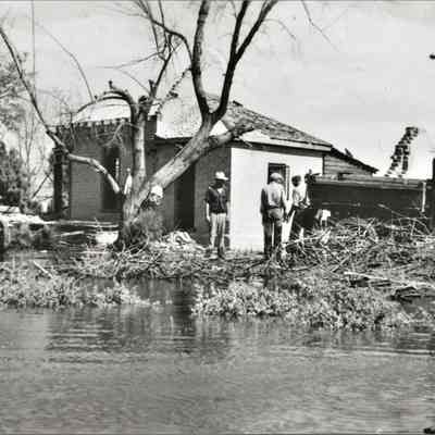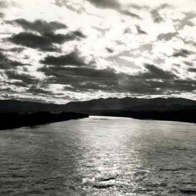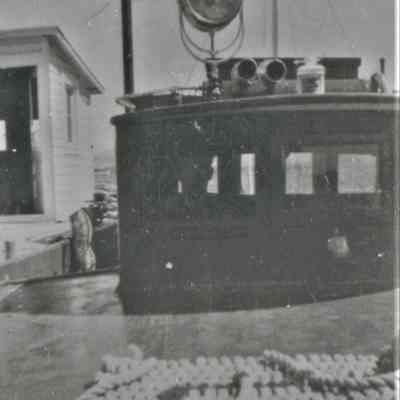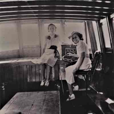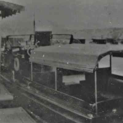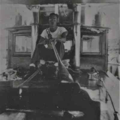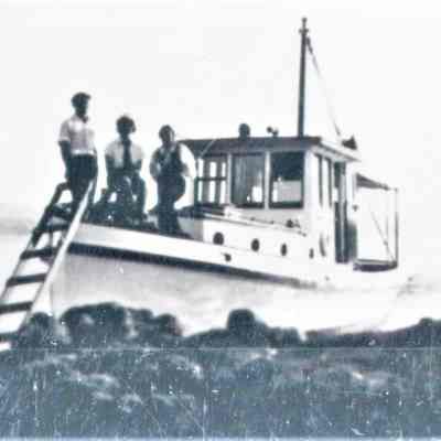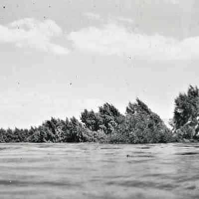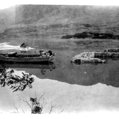"The boat, with Murl, Murphy, J.R. Woodruff. Looking across river