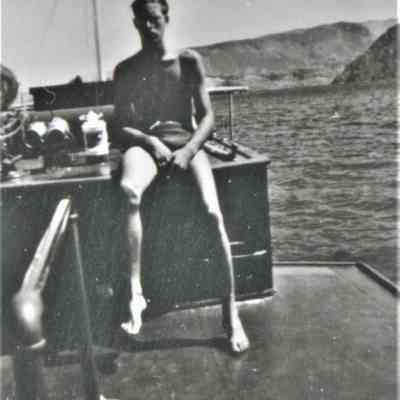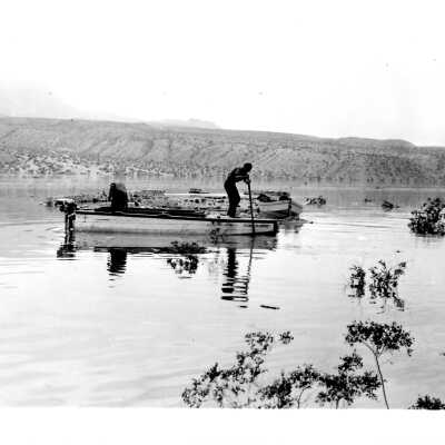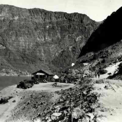 "Murl Emery at his Colorado River stop at the entrance to Black Canyon