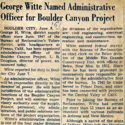 William Elmo Warne assistant commissioner, U.S. Bureau of Reclamation or assistant secretary, Dept. of the Interior
