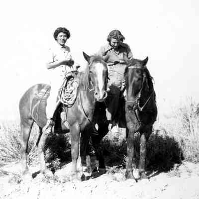 Alta Ham and co-star in the vicinity of Black Canyon during filming of the motion picture "Water", c. 1928-1929