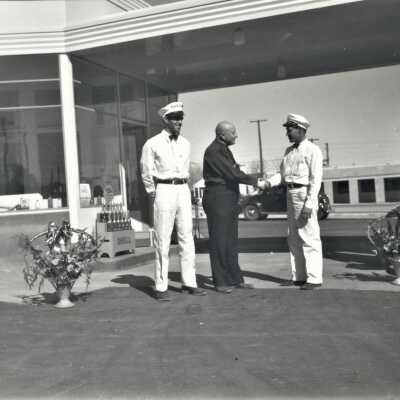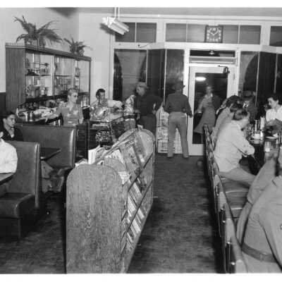 l-r: unidentified [manager of Bert's Root Beer Stand]; George Vaughan, c.1935