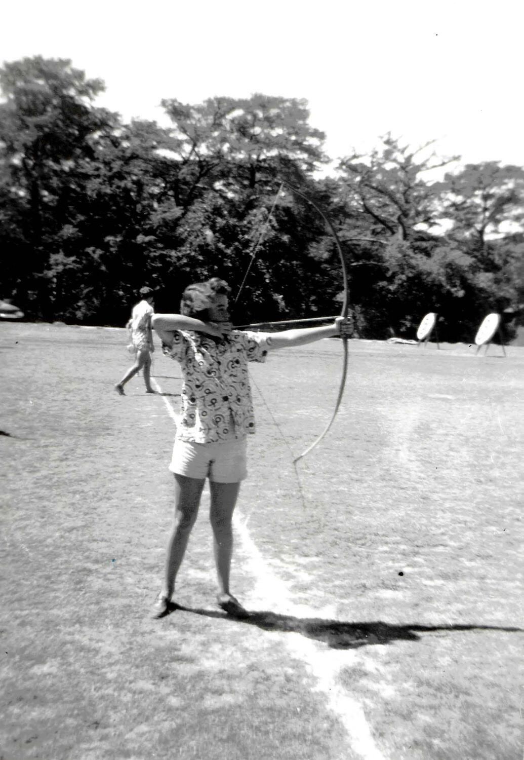 B/W, young girl practicing archery Possibly Girl Scouts of America