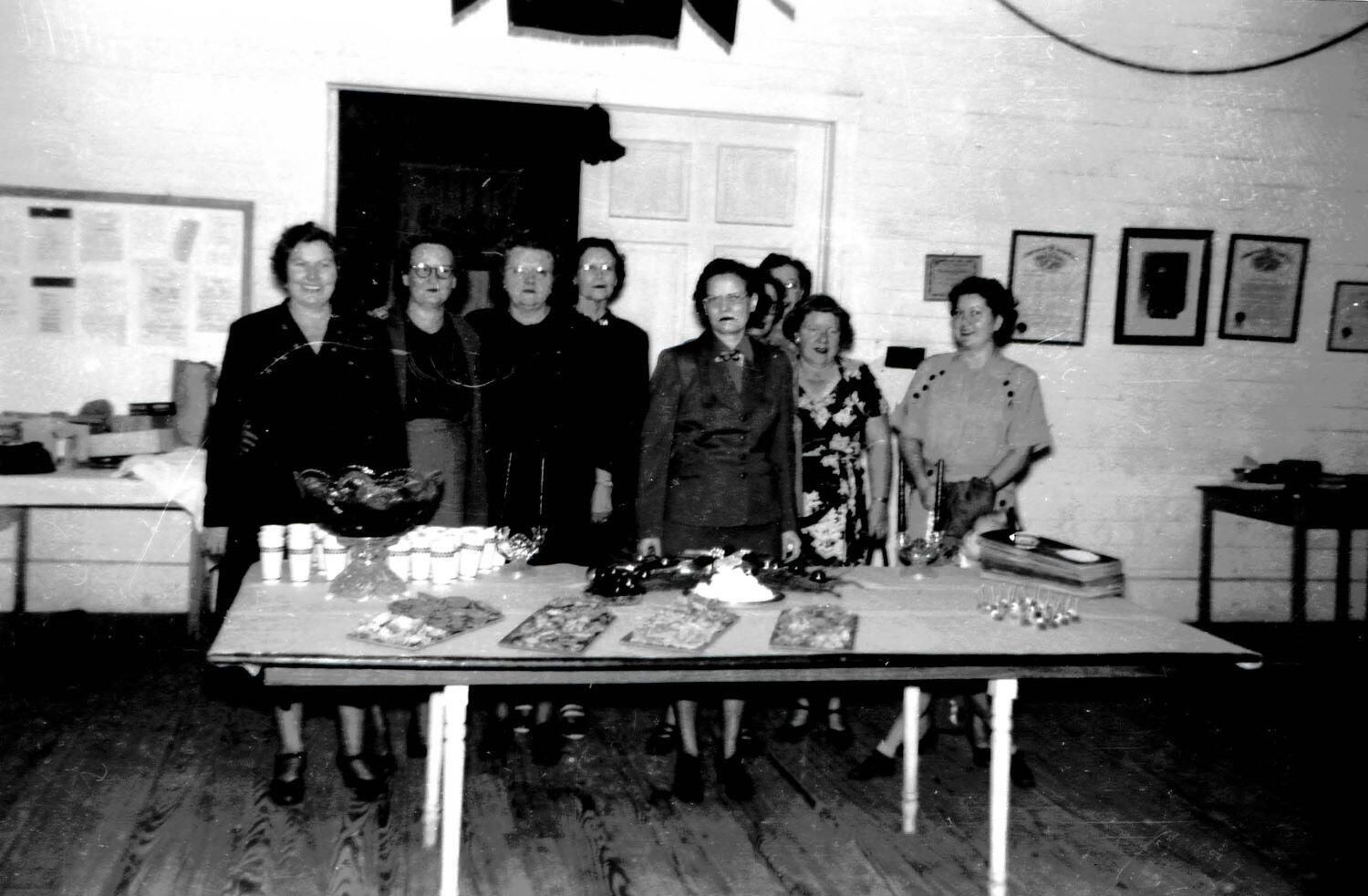 B/W, 9 women standing behind refreshment table Possibly Girl Scouts of America