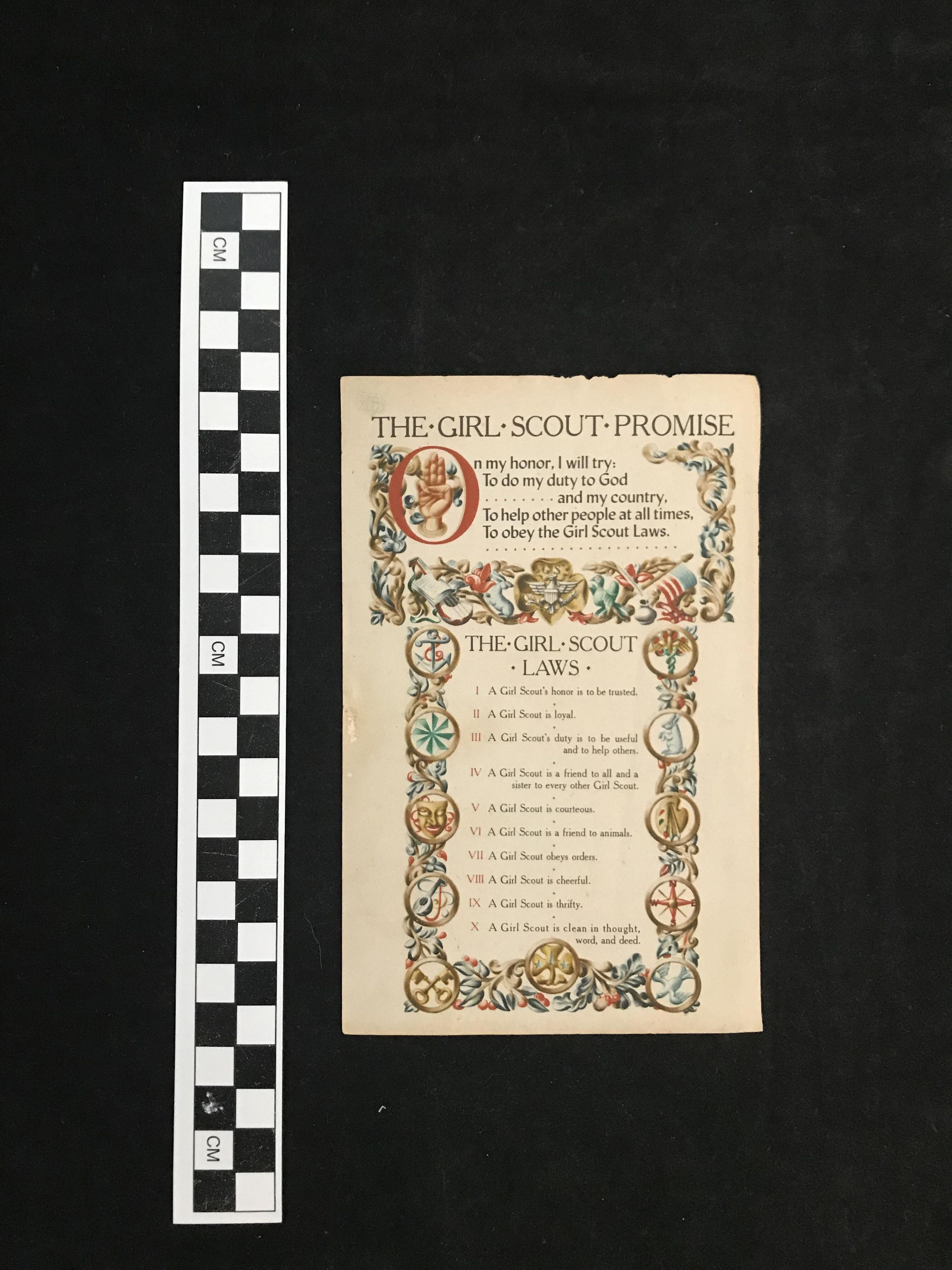 Printed document contains "The Girl Scout Promise" & "The Girl Scout Laws"