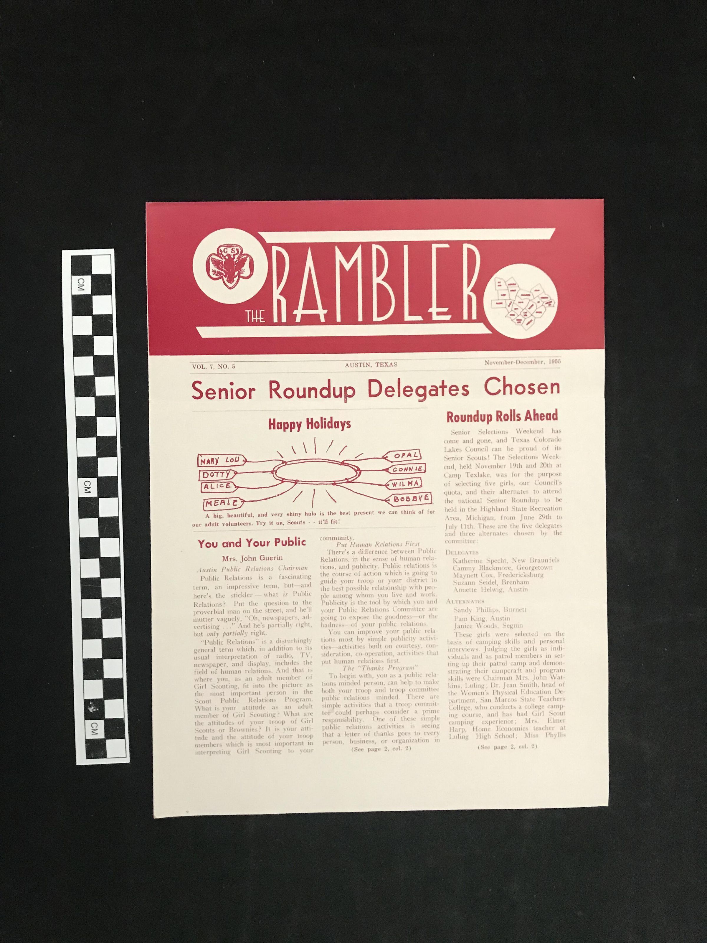 Newsletter; "The Texarado Rambler"; Vol. 7, No. 5; November-December 1955; white paper; red ink