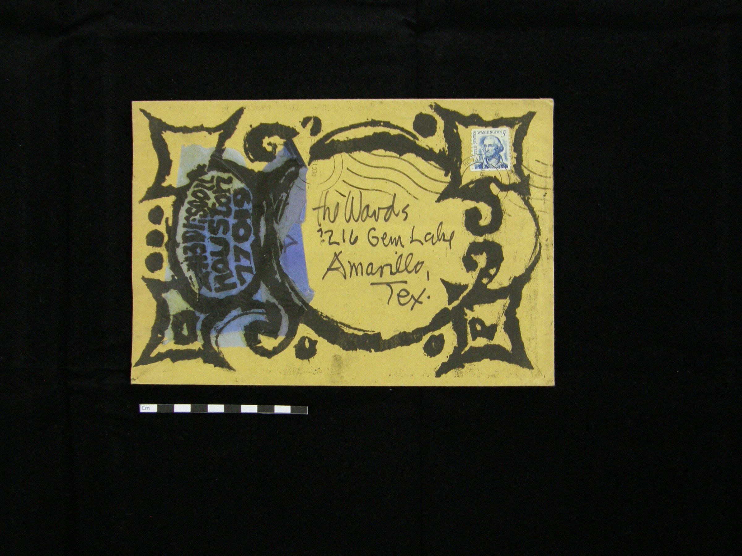 Yellow, blue and black; drawings made by Condon; mailed from Bill Condon in Houston, TX to the Wards in Amarillo, TX; contained a Christmas Card; Washington stamp; 1967Made/Created
