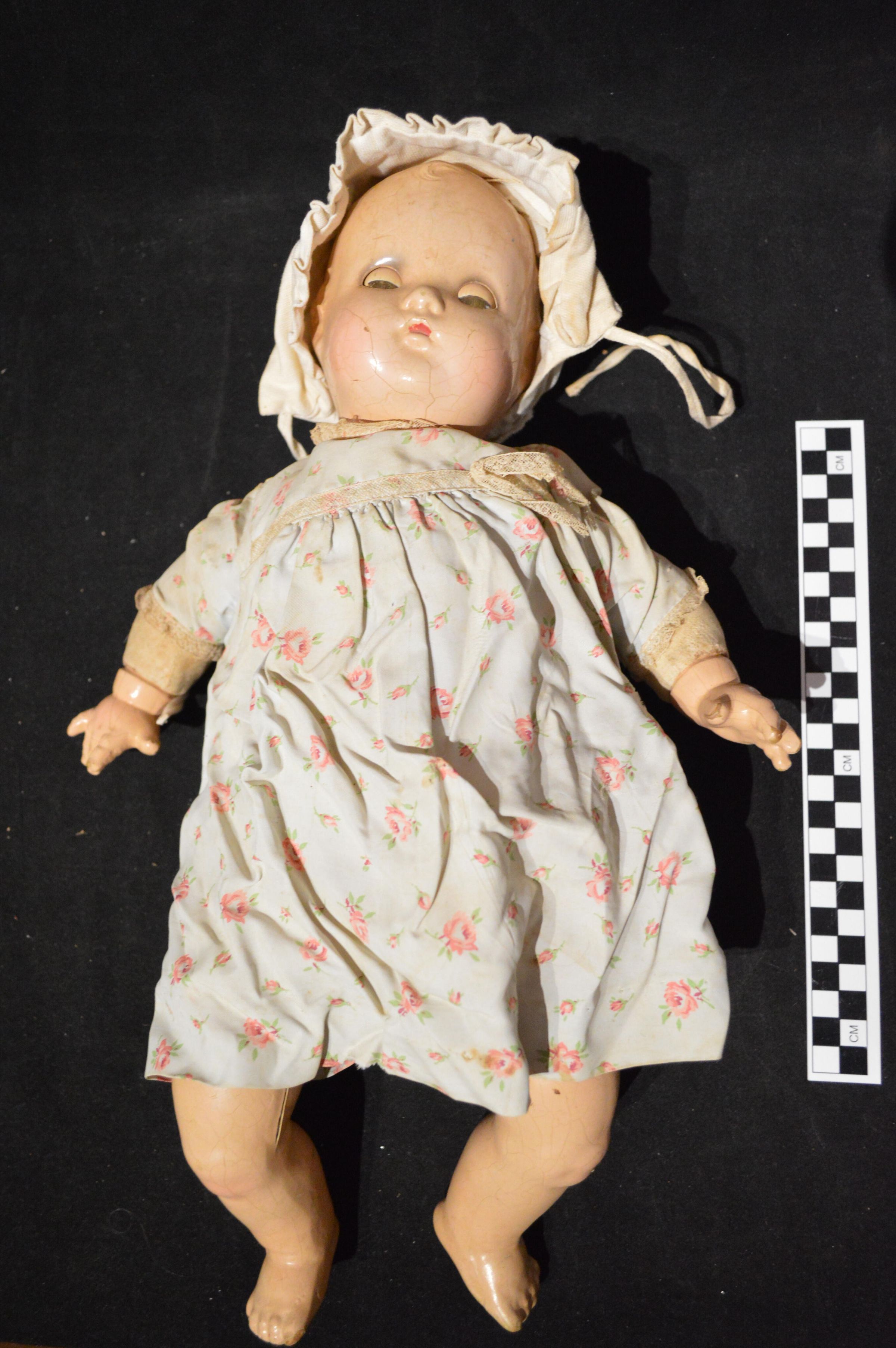 Doll, baby, bonnet and gown