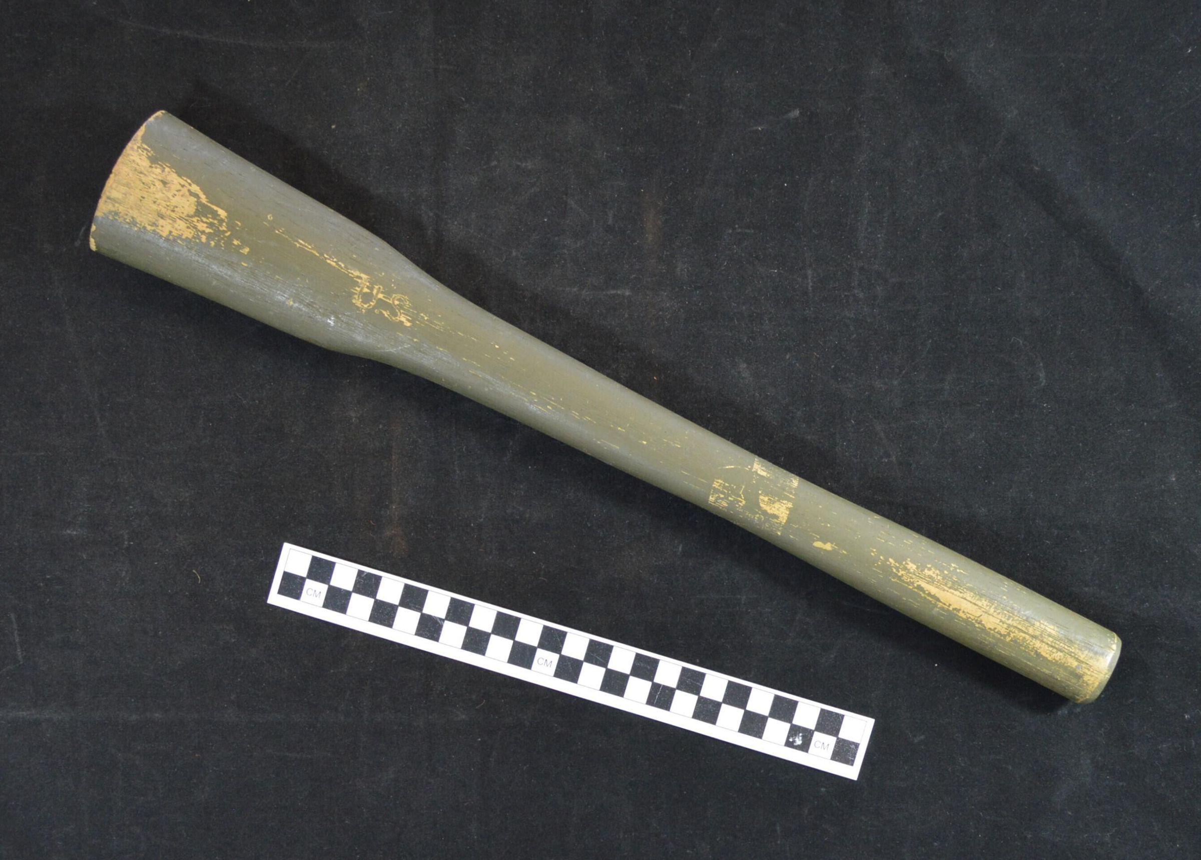 WWI USA Pick Mattock Handle; wooden; painted olive drab; replacement for an entrenching tool