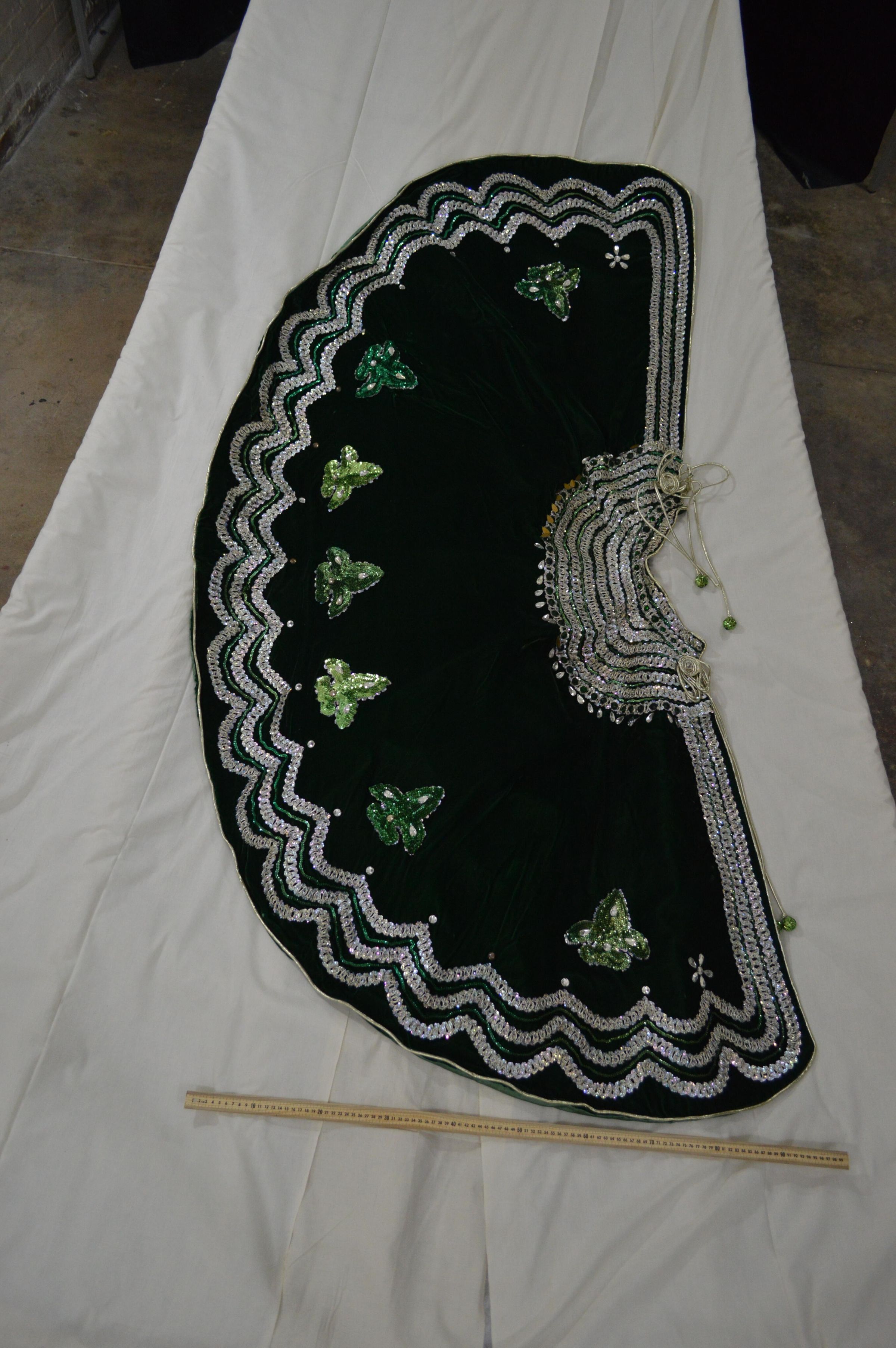 Sr. King Simank, dk green velvet, silver sequin rope outline, green sequin fleur-de-lis, 36in x 75in