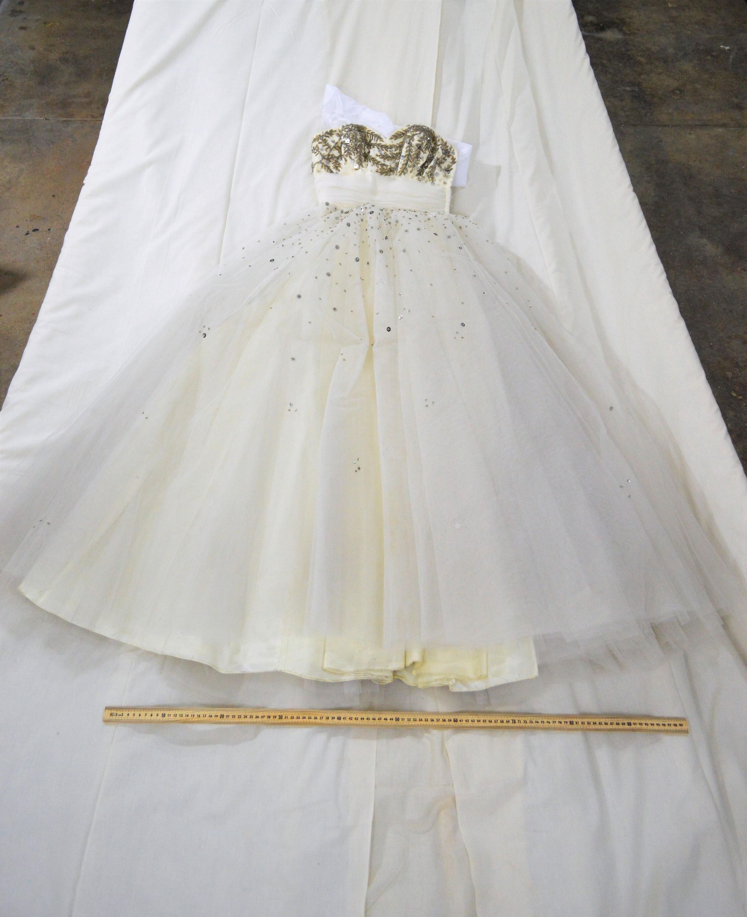 Sr. Queen Byrom, off-white, sweetheart strapless, tulle & rhinestones, 50 in long x 54 in wide