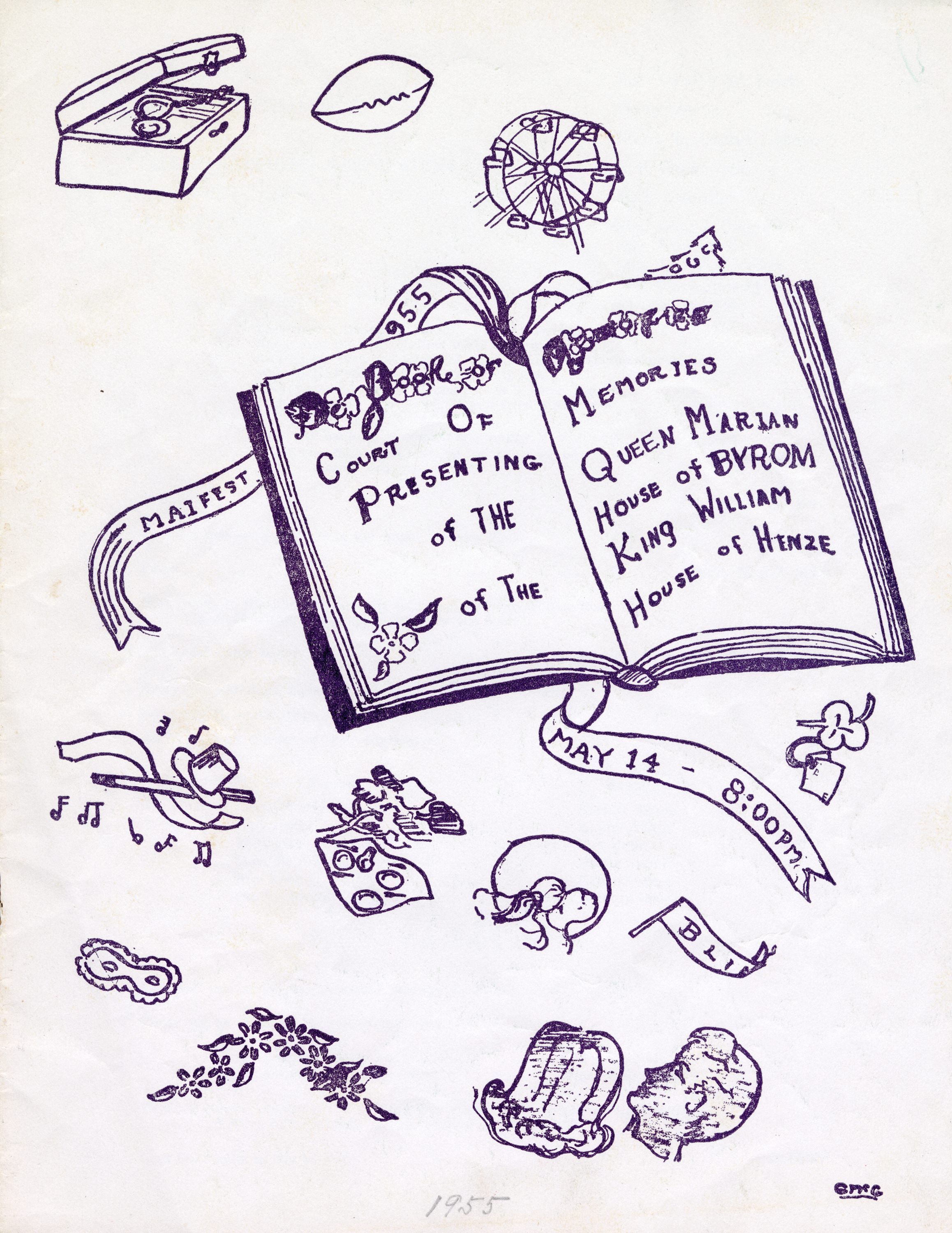 Maifest 1955 Senior Program Cover Only-See 2011.1955.31.2 For Full Scan Senior Queen Marian Byrom and King William Henze Court of Memories