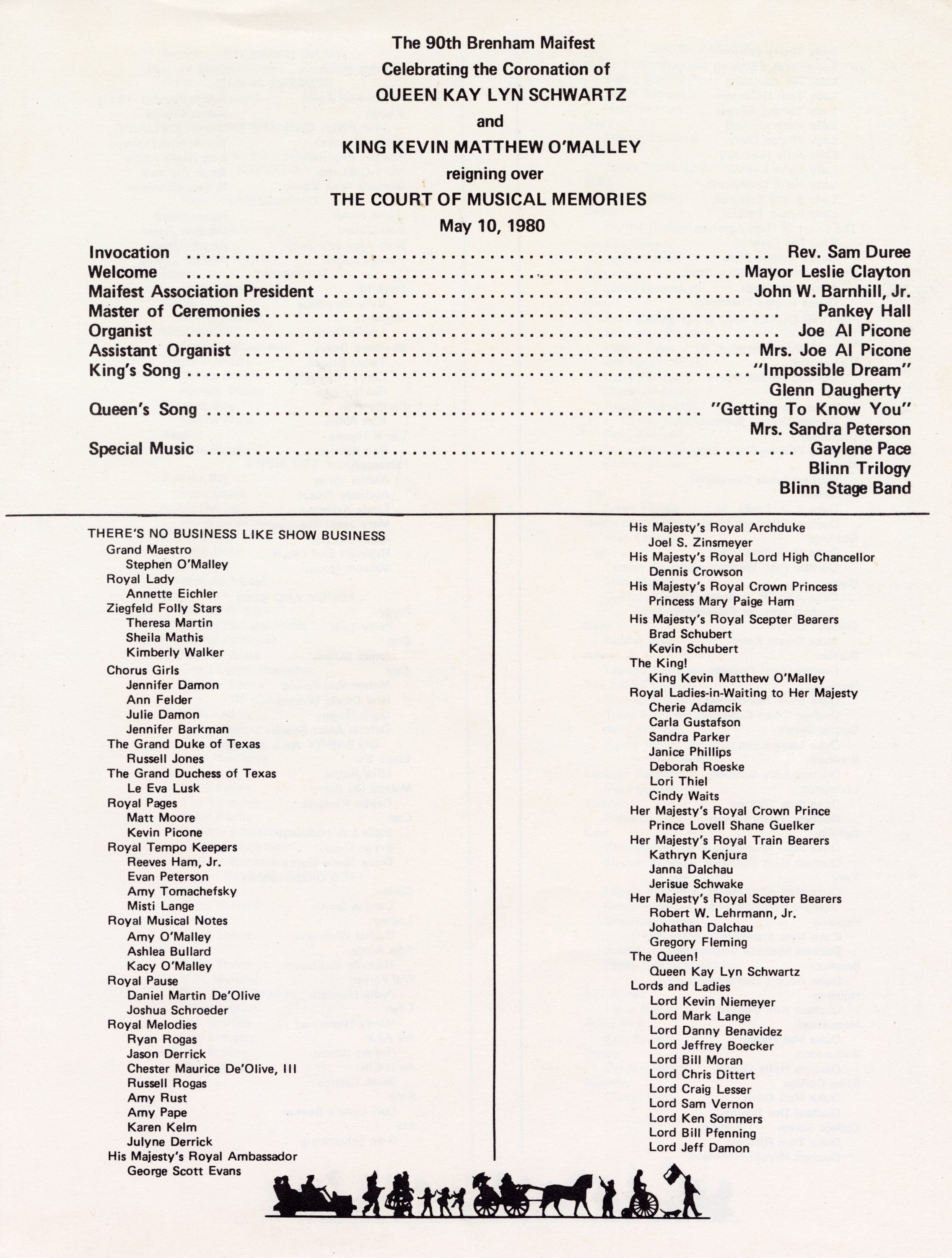Maifest 1980 Senior Maifest Program Insert Senior Queen Kay Lyn Schwartz and King Kevin Matthew O'Malley The Court of Musical Memories