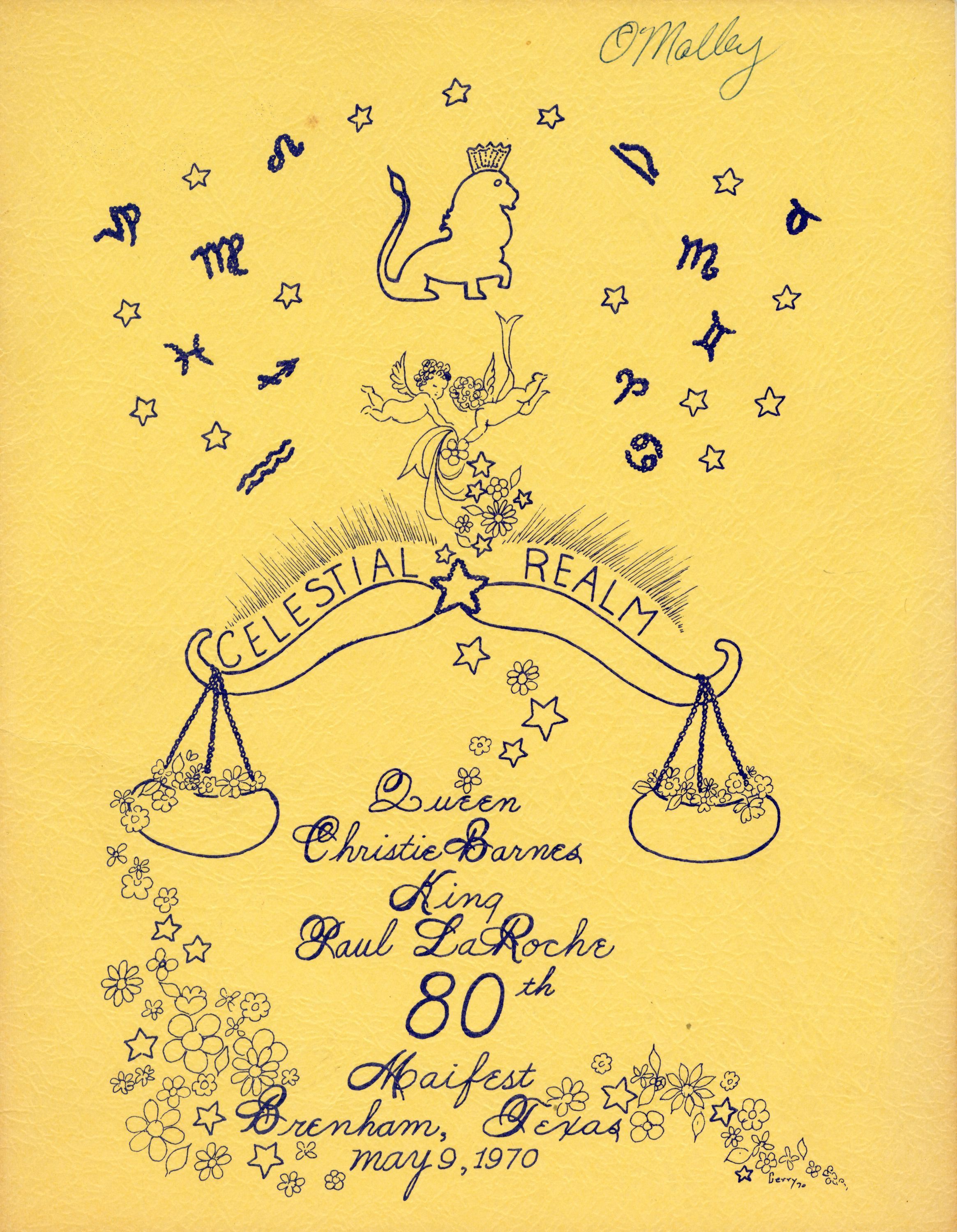 Maifest 1970 Senior Program Cover Only-See 2011.1970.31.1 For Full Scan Senior Queen Christie Barnes and King Paul LaRoche Senior Court of Celestial Realm
