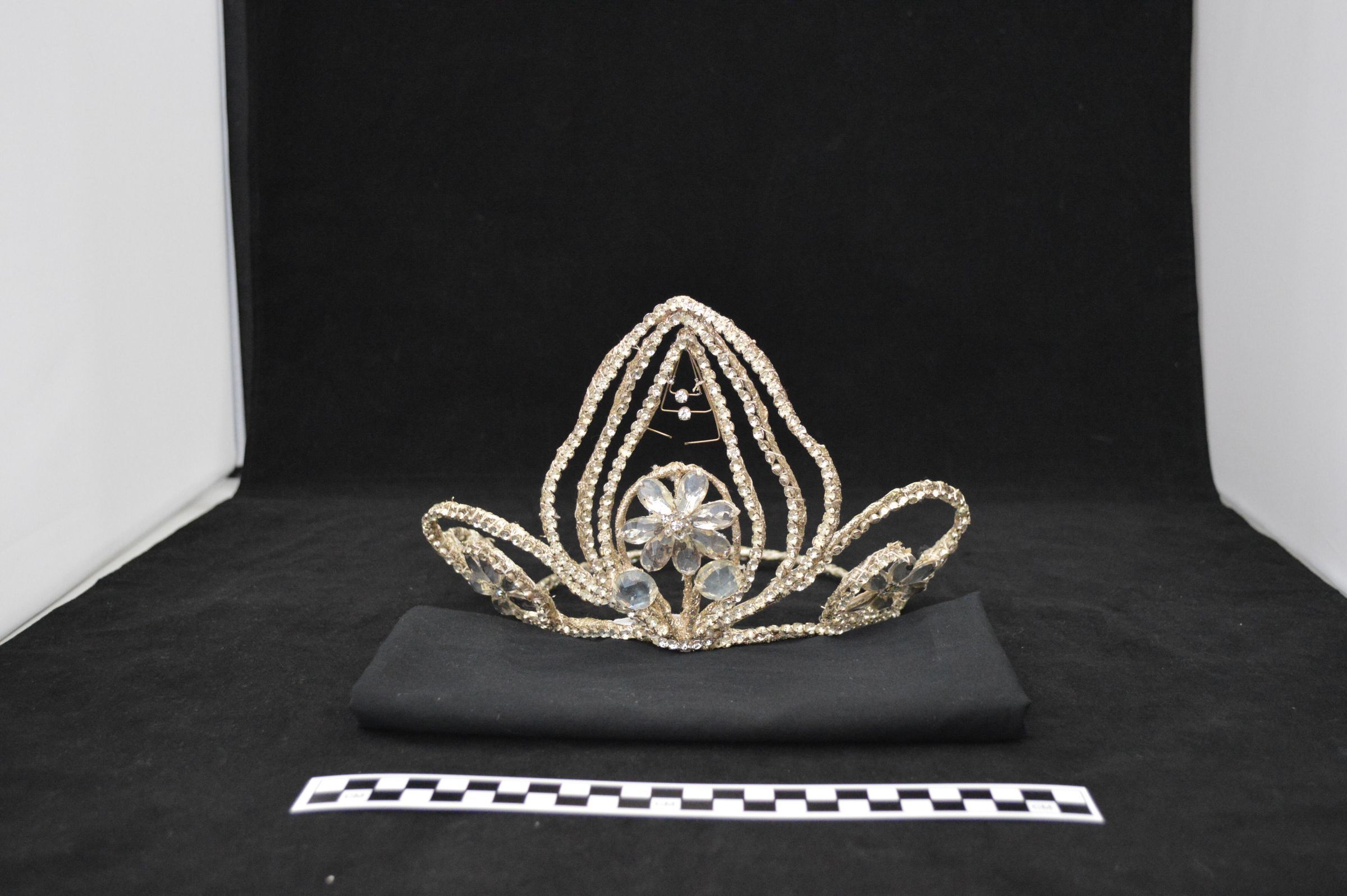 Sr. Queen Byrom, wire covered in rhinestones, teardrop shape front