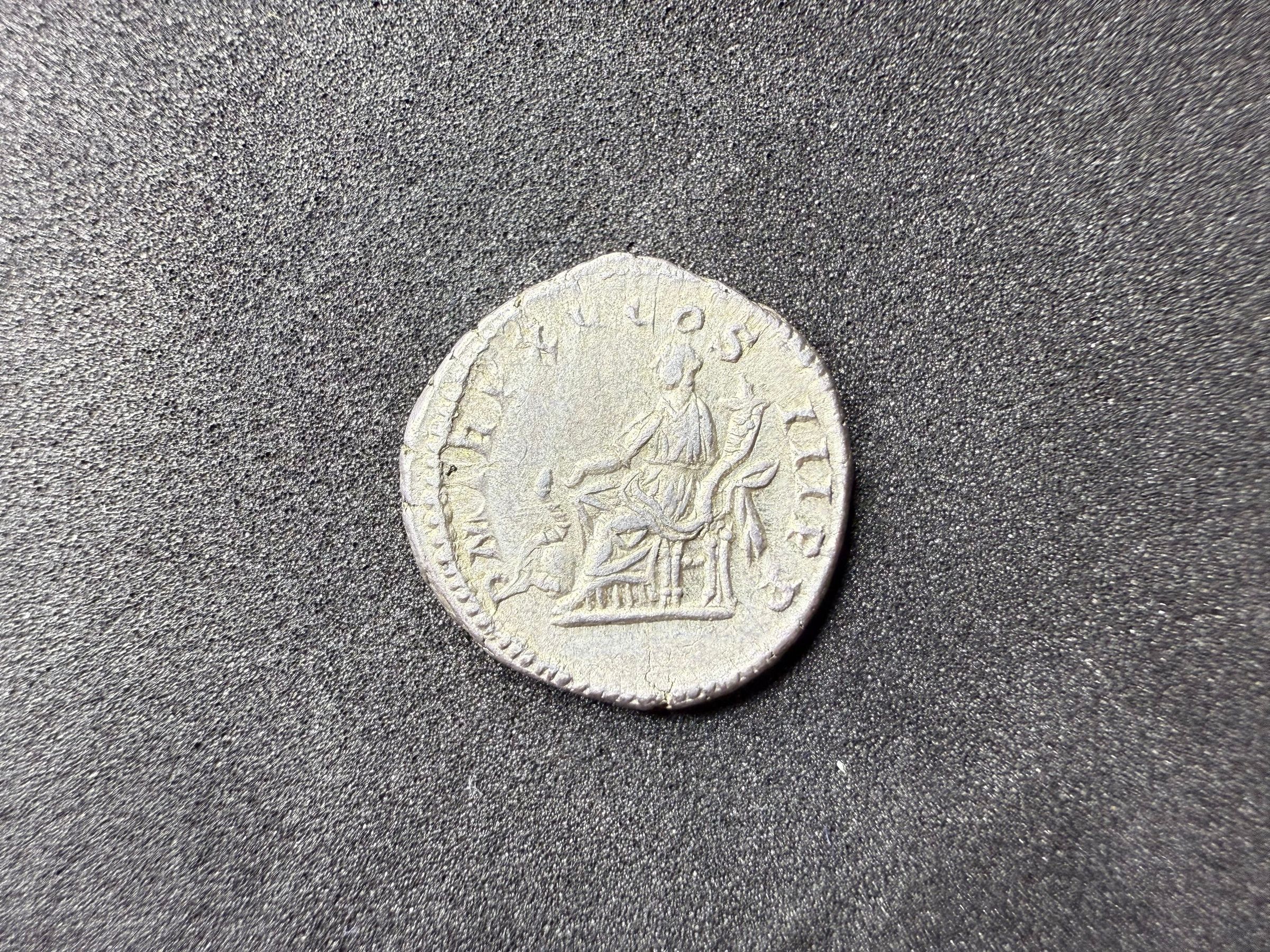 Salus, draped, seated left, feeding out of patera in right hand snake coiled round altar and holdind cornucopiae in left armTranscription