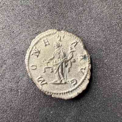 Moneta, draped, standing left, holding scales in right hand and cornucopiae in left hand