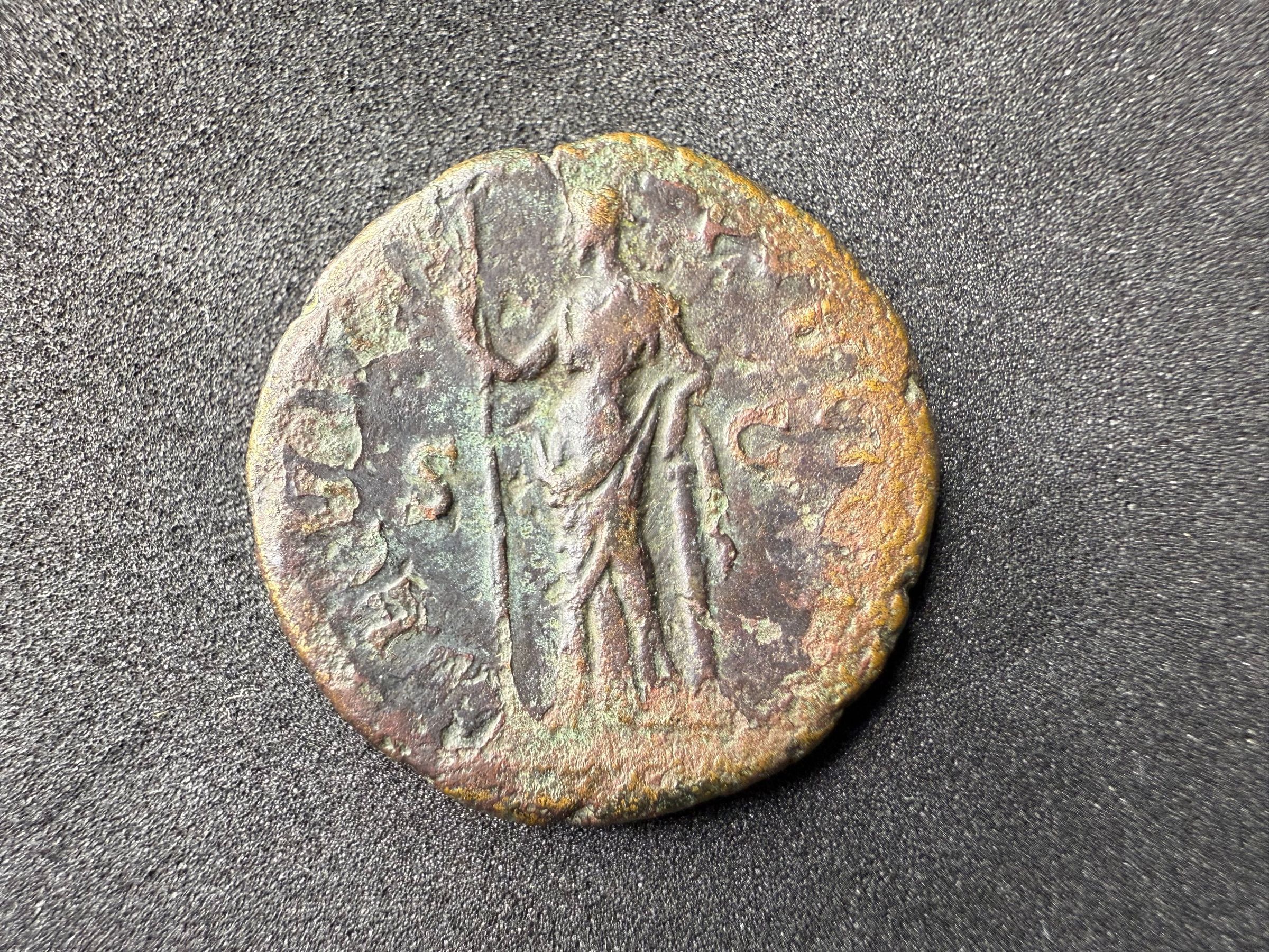 Securitas, draped, standing left, holding sceptre in right hand and resting left arm on columnTranscription
