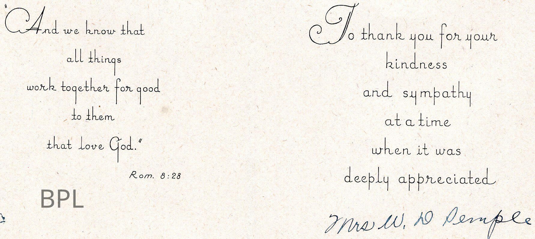 Thank you note to Bristolville Woman's ClubCataloged By